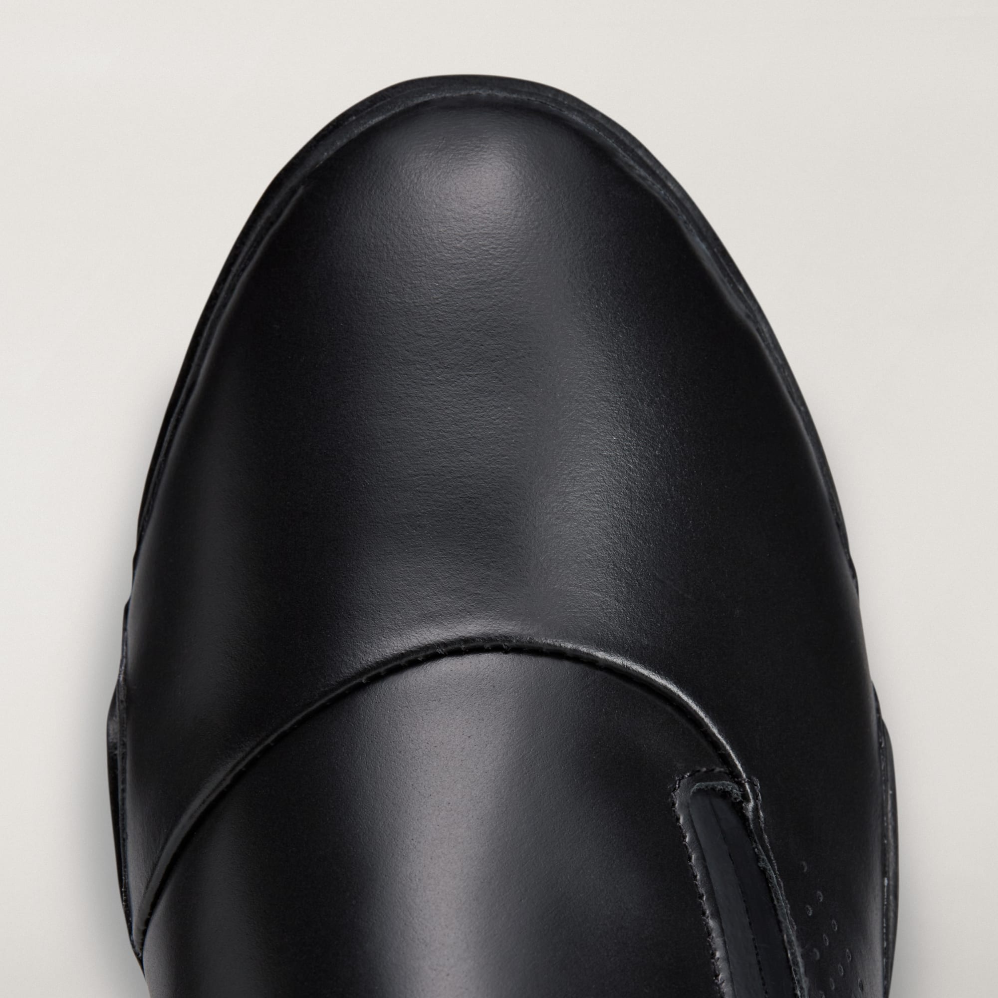 Une chaussure en cuir avec un zip sur le côté pour l’enfiler et l’enlever facilement.