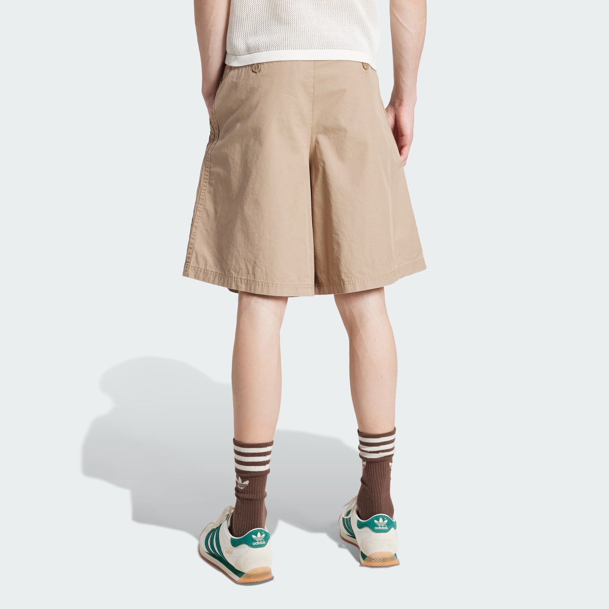 Ce short adidas Originals est un peu plus long et un peu plus large que les modèles standards. Avec sa silhouette classique, il est confectionné en toile légère dans un coloris naturel. Un logo Trèfle adidas rehausse subtilement la jambe.