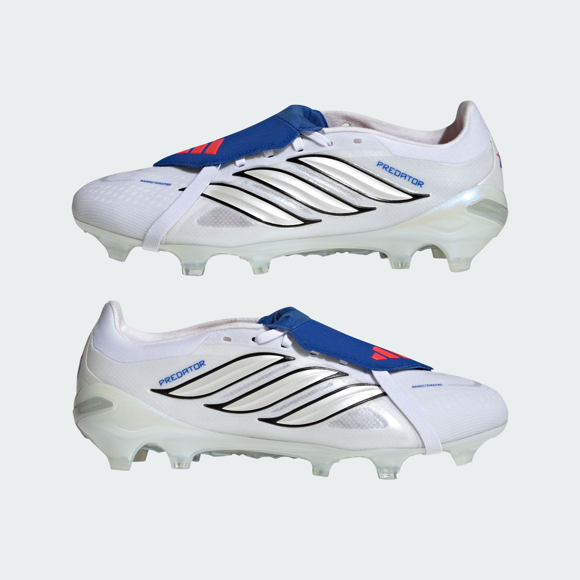 Entre sur le terrain avec assurance avec la chaussure de football à languette rabattable PREDATOR PRO pour terrain souple. Conçue pour t’aider à libérer ton potentiel et à prendre le contrôle devant le but, cette chaussure allie innovation et performance. Ressens la synergie entre maintien et adhérence grâce à la technologie Nanostrike Pro, pensée pour la souplesse et la légèreté. Le mesh innovant avec technologie de frappe apporte précision et contrôle, tandis que la languette rabattable emblématique offre un support optimal et une surface de frappe lisse, pour que tu te concentres uniquement sur ta technique. Les zones haptiques intégrées renforcent la précision de tes frappes, et la semelle extérieure Controlplate, équipée de crampons adaptés, assure stabilité et adhérence sur terrain souple. La technologie PowerSpine apporte stabilité au médio-pied, pour des frappes plus puissantes et maîtrisées. Avec adidas, tu ne te contentes pas de suivre les règles. Tu les redéfinis. Adopte le futur du football avec cette chaussure haute performance et transforme chaque match en chef-d’œuvre.