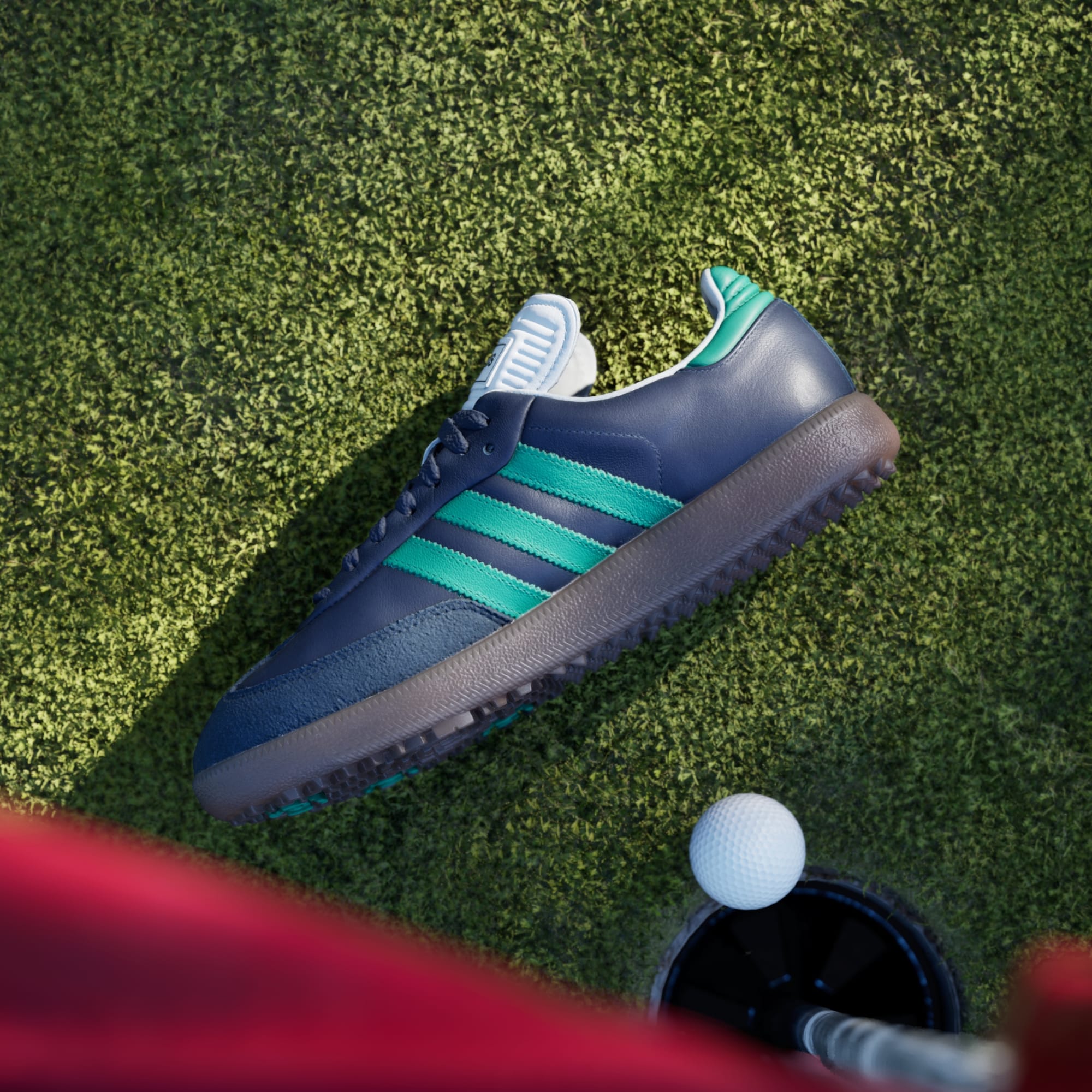Une chaussure de golf sans crampons au style adidas héritage.