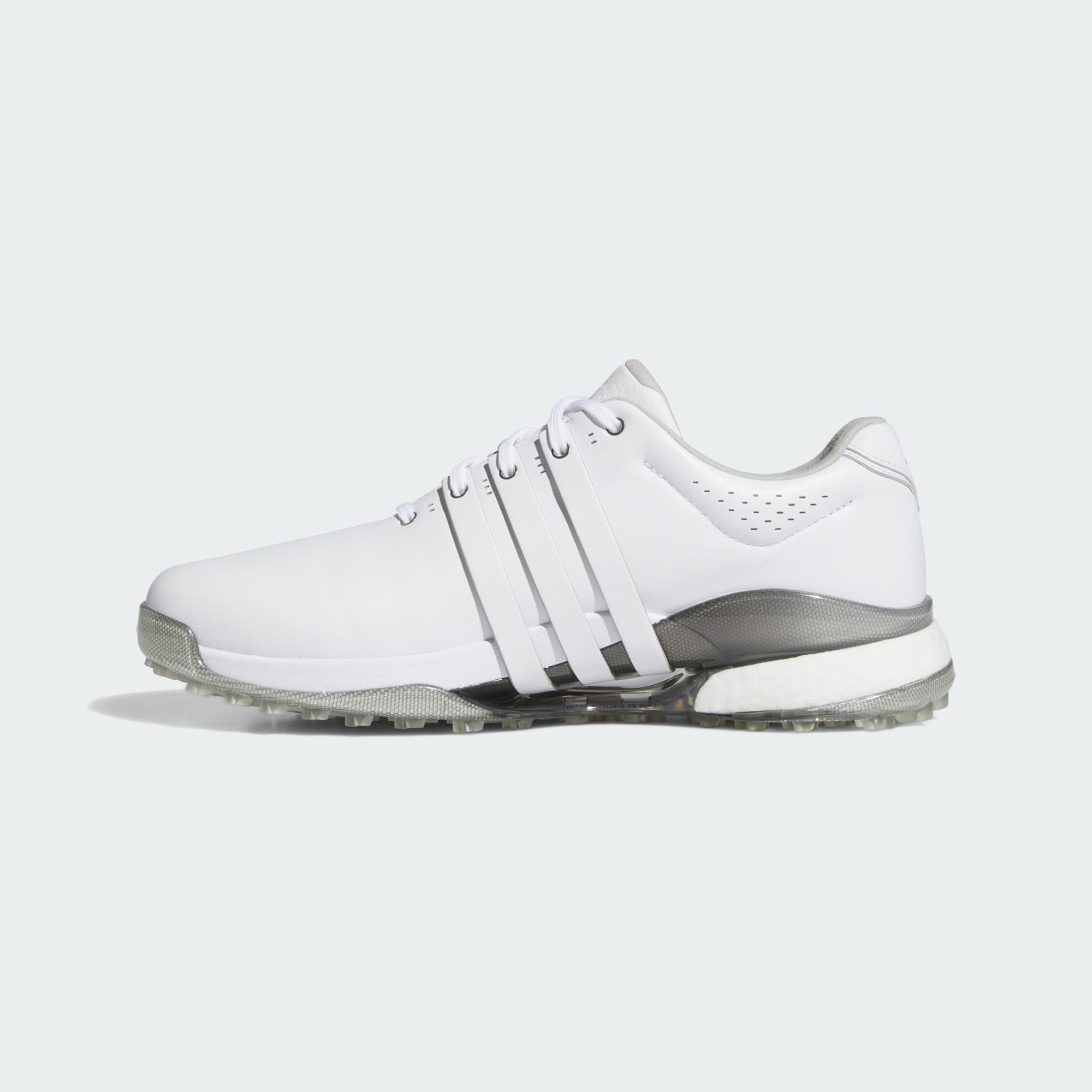Un modèle créé pour la performance et sans crampons, encore amélioré. Enfilez la chaussure de golf sans crampons Tour360 adidas et profitez d'une stabilité supérieure grâce à son design enveloppant signature, en plus du retour d'énergie offert par la technologie adidas BOOST. La semelle extérieure sans crampons 3D Traxion assure une accroche efficace sur le parcours, tout en alliant confort et polyvalence au quotidien.