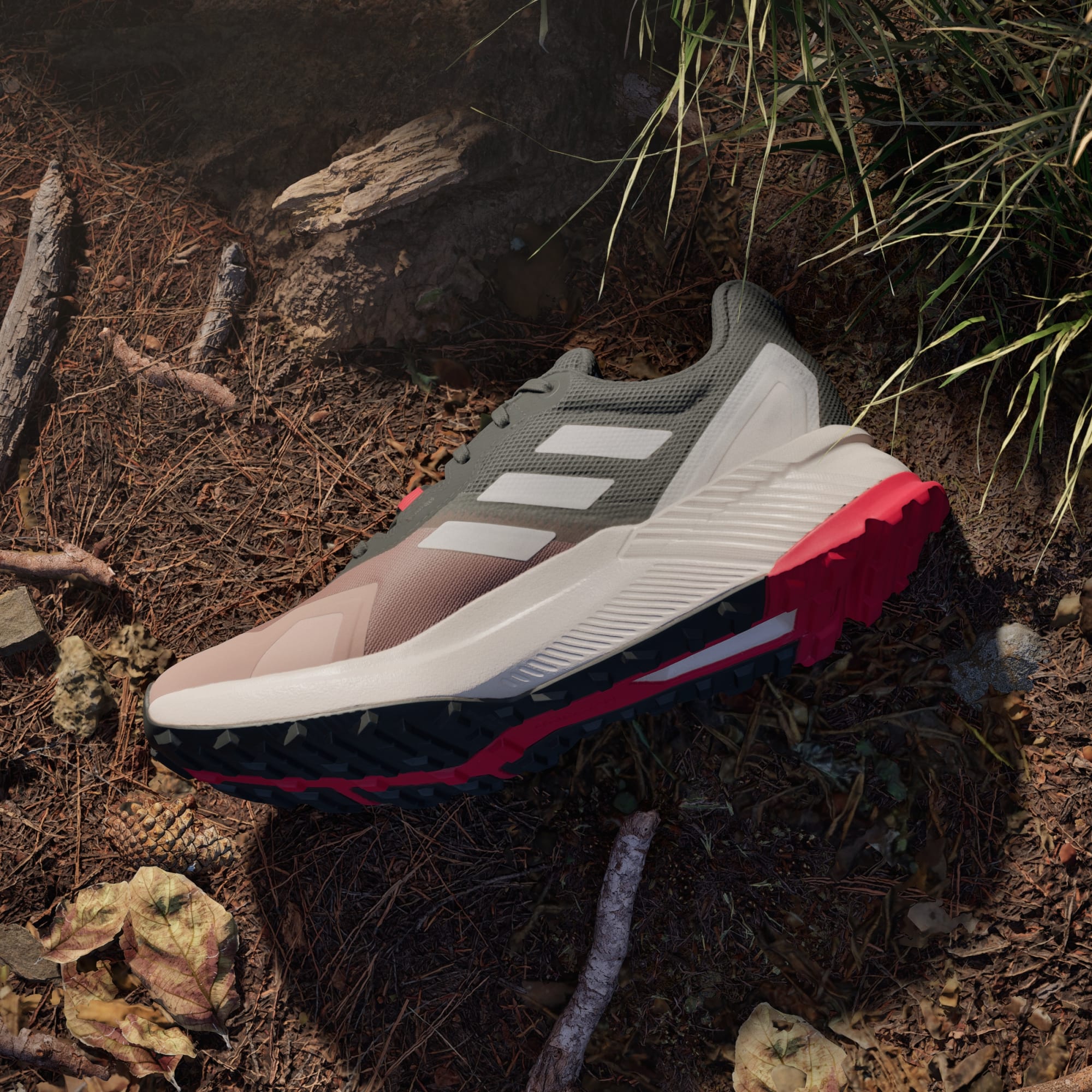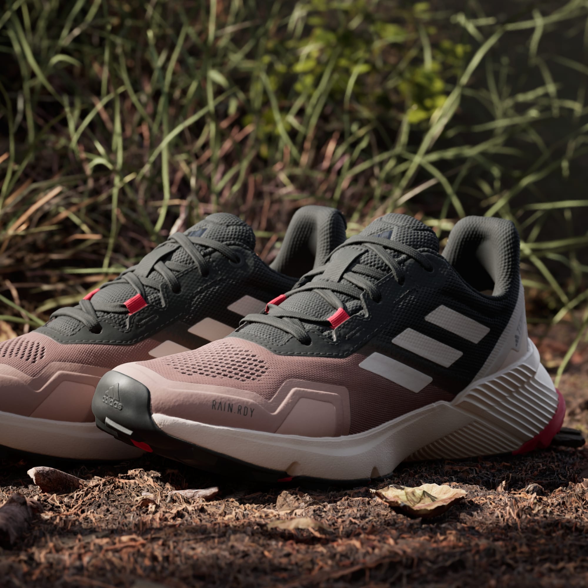 Sors des sentiers battus. De ta porte d'entrée jusqu'aux sentiers, cette chaussure de trail running adidas t'offre un amorti et un confort tout en légèreté. La technologie imperméable RAIN.RDY garde tes pieds au sec quand tu sautes par-dessus les ruisseaux et les zones boueuses. La technologie Traxion offre une accroche multidirectionnelle sur le bitume et les sentiers. La tige est confectionnée en matériaux recyclés à hauteur de 50 % minimum. Ce produit ne constitue qu'une de nos solutions pour contribuer à mettre fin aux déchets plastiques.