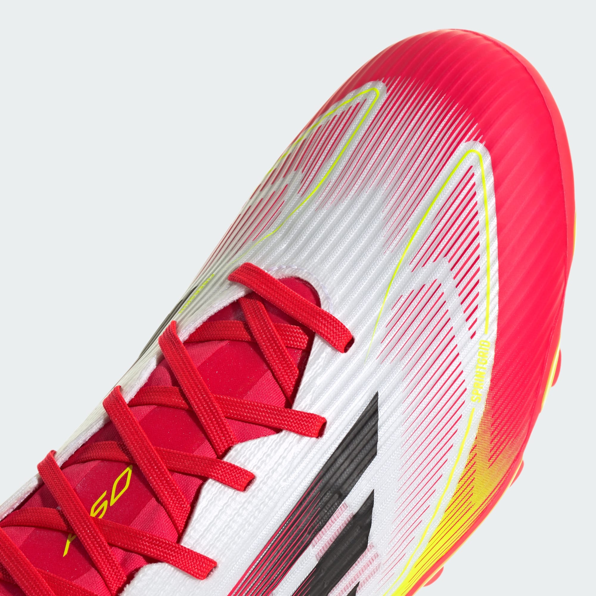 Accélère le rythme avec la chaussure adidas F50 légère, créée pour la vitesse. Ornée d'un imprimé Sprintgrid original, la tige Fiberskin de cette chaussure de football League présente une languette Tunnel qui t'assure un maintien optimal. Retourne-la et tu verras une semelle extérieure polyvalente qui offre un dynamisme supplémentaire sur toutes les surfaces.