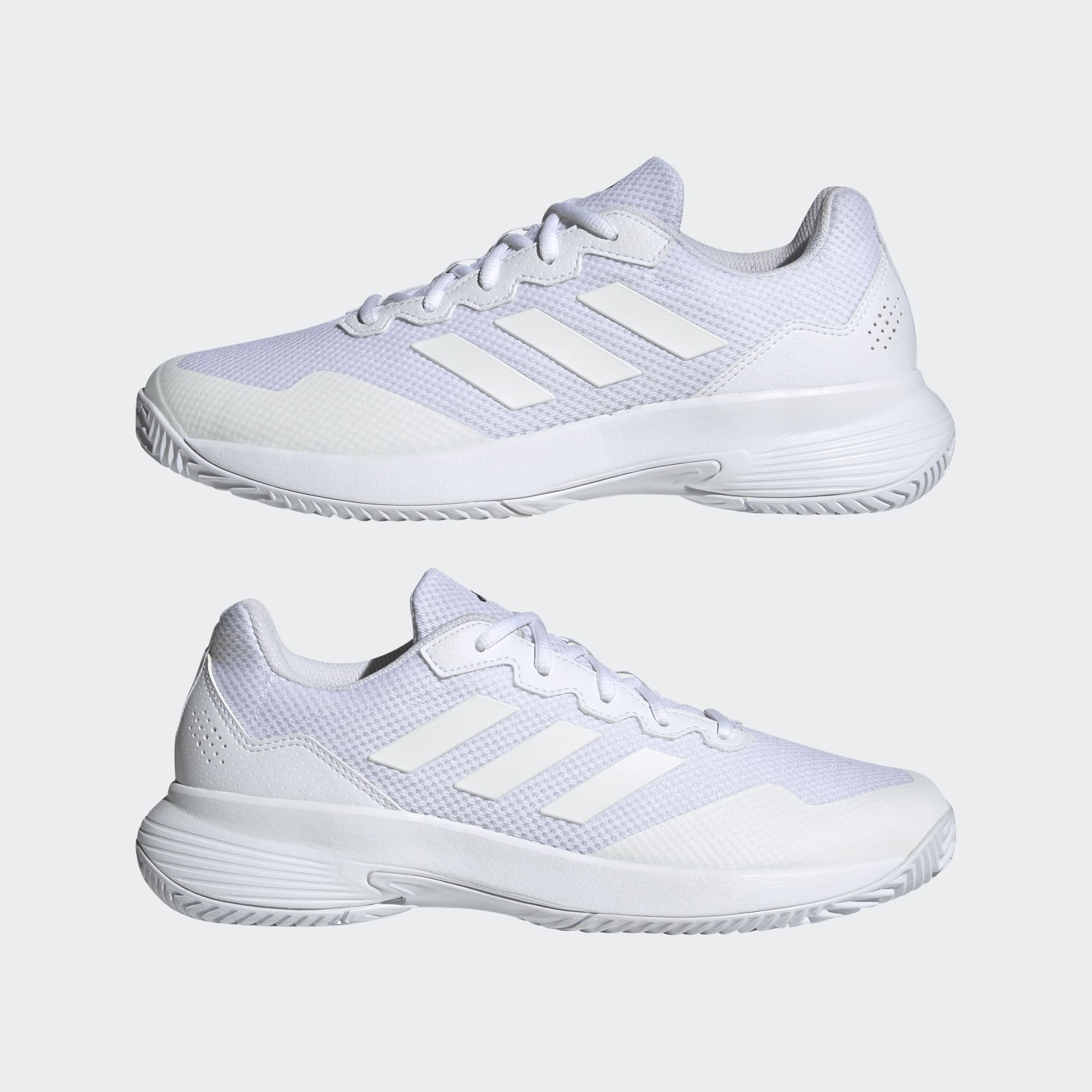 Reste confiant à chaque set. La chaussure adidas Gamecourt 2.0 possède une tige légère en mesh et un talon matelassé pour un confort maximum. La semelle intermédiaire en EVA t'assure un confort optimal pour être sur toutes les balles. La semelle extérieure Adiwear garantit une accroche ultime sur les surfaces dures sans sacrifier la durabilité.
