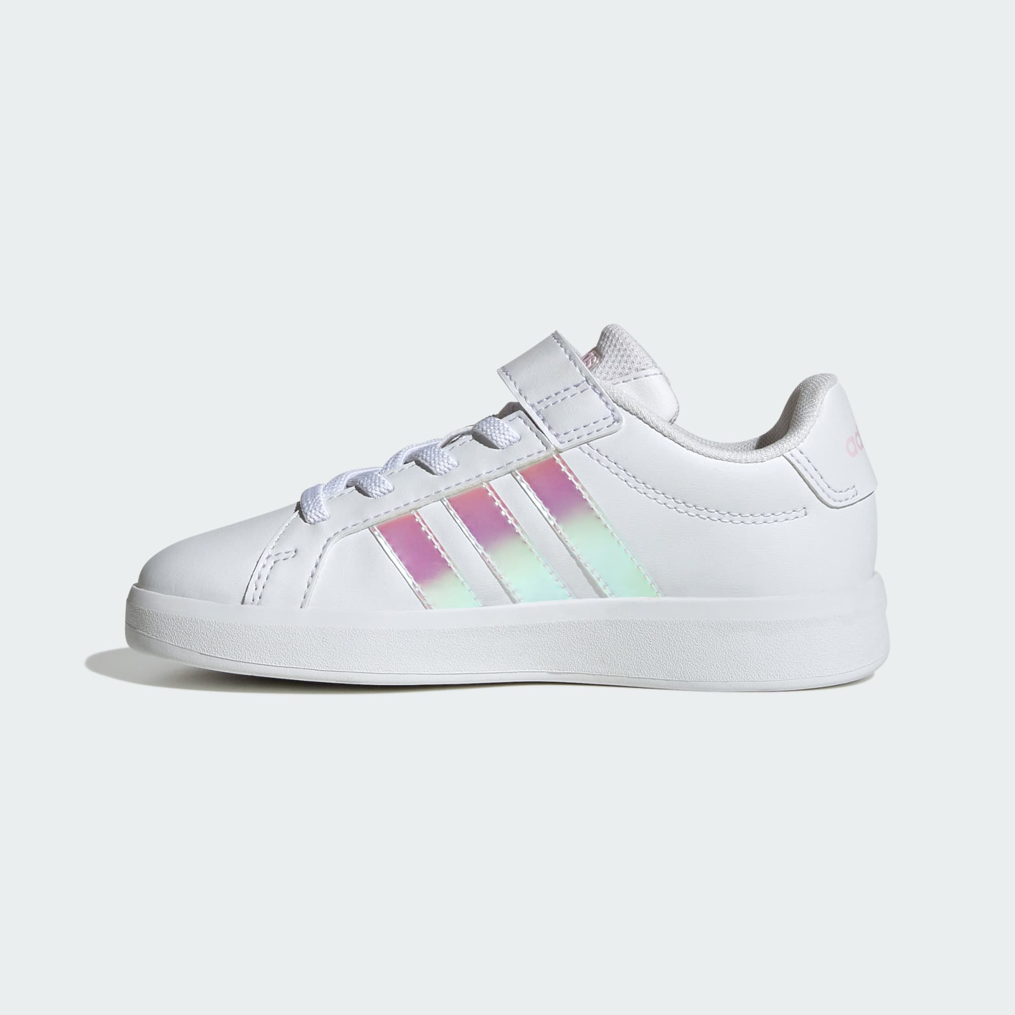 La chaussure Grand Court 3.0 EL C est conçue pour les enfants qui aiment jouer et explorer. Avec une tige en matière synthétique, elle offre une durabilité optimale et un look classique qui reste tendance. La large fermeture à lacets élastiques avec une bride supérieure assure un chaussant ajusté, permettant aux enfants de l'enfiler et de l'enlever facilement sans aide. La semelle Cupsole en caoutchouc NON MARKING offre une excellente accroche et une bonne traction, ce qui rend cette chaussure bien adaptée aux sessions de jeux intenses à l'intérieur et à l'extérieur. adidas a conçu cette chaussure en mettant l'accent sur le bien-être et la flexibilité pour bouger librement et en toute confiance avec confort et soutien. Parfaite au quotidien, cette chaussure alliant style et fonctionnalité est un ajout polyvalent à toute garde-robe.