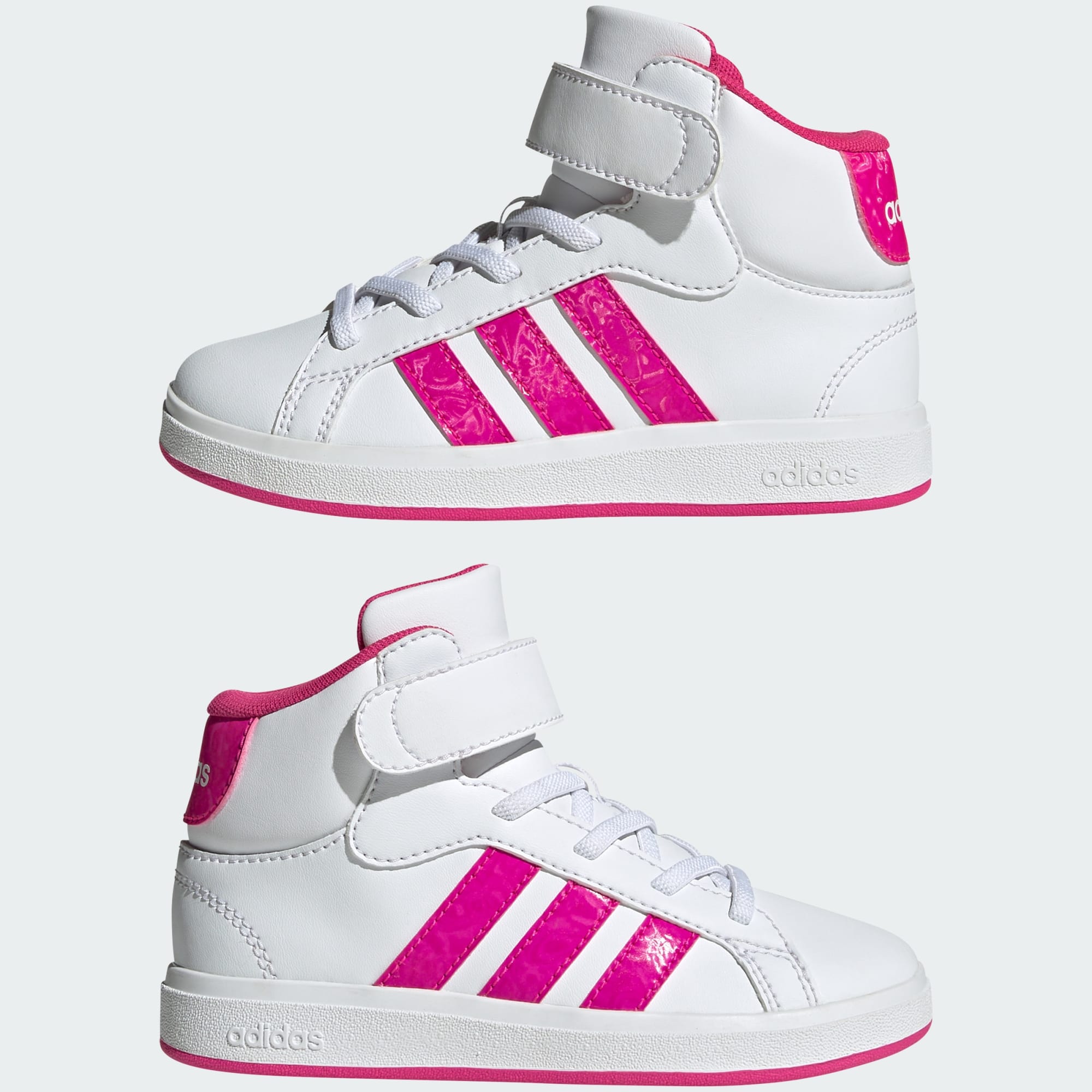 Cette chaussure adidas revisite une icône du tennis en version mini pour les plus jeunes. Sa tige mi-montante en matière synthétique lisse offre un confort optimal. Les lacets élastiques et le scratch assurent un ajustement personnalisé pour accompagner les enfants dans toutes leurs aventures. La semelle extérieure en caoutchouc résistant garantit une accroche fiable, même en dehors du terrain. Ce produit contient au moins 20 % de matières recyclées. En réutilisant des matériaux déjà créés, nous contribuons à réduire les déchets et notre dépendance aux ressources limitées, afin de réduire l'empreinte écologique des produits que nous fabriquons.