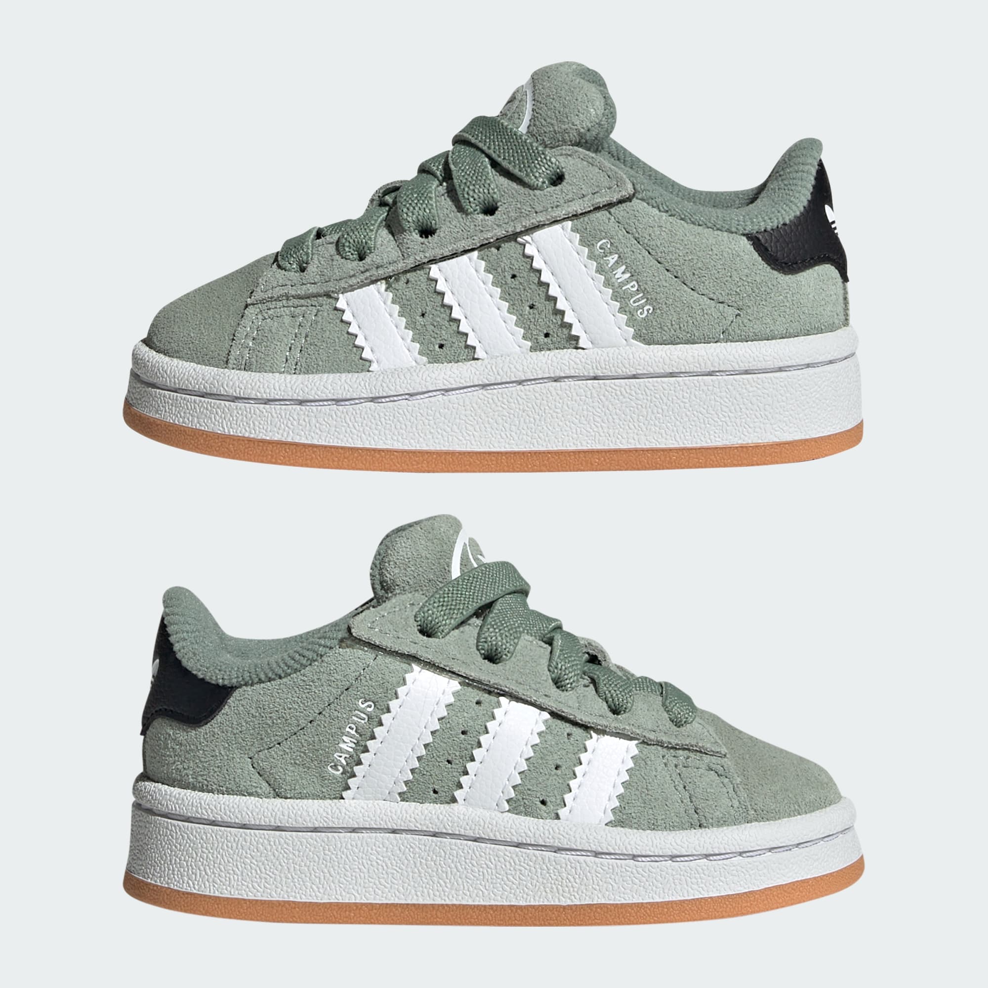 Les bébés sont adorables quoi qu'il arrive, et cette chaussure est comme la cerise sur le gâteau. Cette chaussure Campus 00s est dotée d'un système de fermeture confortable qui la rend super facile à enfiler et à retirer. Les lacets stretch laissent le col s'ouvrir en grand et le scratch assure un ajustement parfait. Conçue en cuir doux et suède, elle possède une semelle extérieure souple parfaite pour les petits pieds qui gigotent.