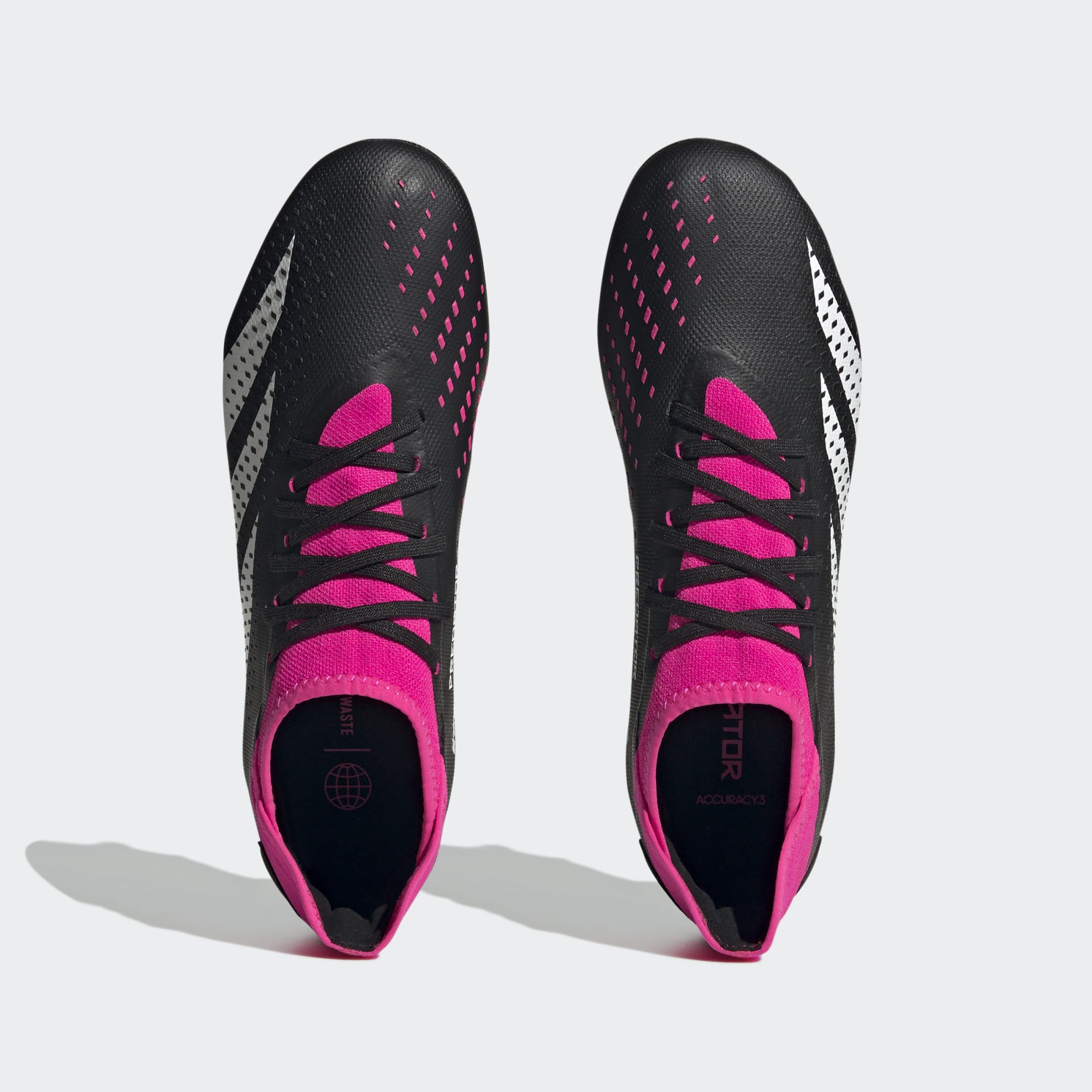Contrôle + précision = confiance. Quand le but est dans ta ligne de mire, vise la perfection avec la Predator Accuracy adidas. La tige textile douce et enduite de cette chaussure de football présente une texture haute définition sur la zone de frappe. Mixant des éléments gravés et un imprimé en relief, elle est là pour t'aider à réussir chaque passe et chaque frappe. La semelle extérieure spécialisée pour terrain gras te permet de montrer que tu es le boss et que tu comptes bien le rester. La tige est confectionnée en matériaux recyclés à hauteur de 50 % minimum. Ce produit ne constitue qu'une de nos solutions pour lutter contre les déchets plastiques.