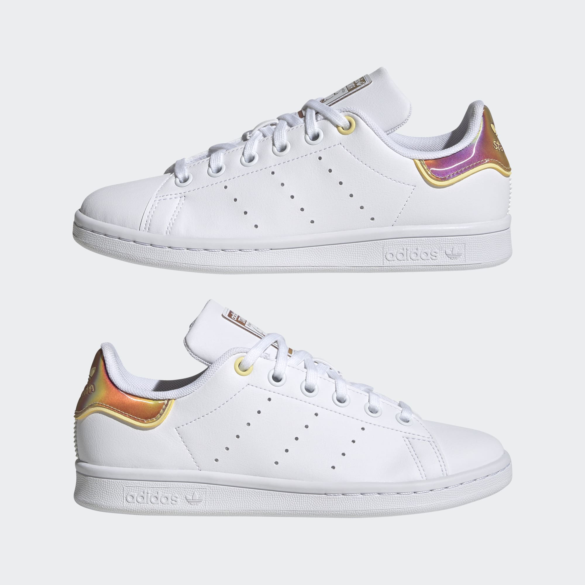 Cette chaussure adidas junior irisée scintille quand tu marches dans la rue, reflêtant toutes les couleurs de tes émotions. Et tu pourras avoir la conscience tranquille, sachant que cette sneaker va non seulement bouleverser ton monde, mais qu'elle est aussi conçue en partie avec des produits qui protègent la planète. La technologie des matériaux a changé, mais le look iconique de la Stan Smith reste le même. La tige est confectionnée en matériaux recyclés à hauteur de 50 % minimum. Ce produit ne constitue qu'une de nos solutions pour lutter contre les déchets plastiques.