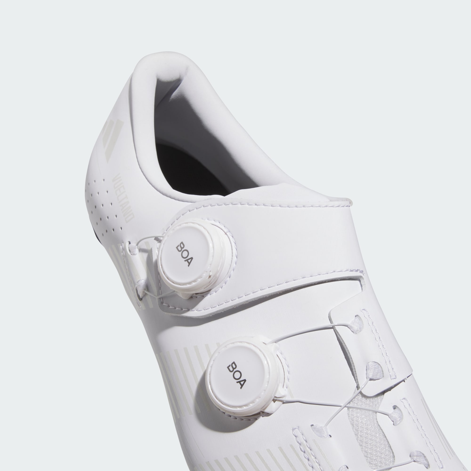 En matière de cyclisme, la polyvalence est essentielle. La chaussure Vueltano Carbon est conçue pour être polyvalente, aussi bien pour les trajets quotidiens que pour les longs trajets sur route. Conçue avec une semelle plus flexible, elle facilite la marche par rapport aux autres chaussures de cyclisme et rend les moments passés hors du vélo beaucoup plus confortables. Les lacets BOA® peuvent être réglés rapidement et facilement et offrent un ajustement personnalisé. Les perforations améliorent la circulation de l’air, ce qui permet de garder tes pieds au frais et au sec. La semelle extérieure injectée est composée de fibre de carbone et de fibre de verre pour une conduite à la fois légère et solide, tandis que les découpes dans la plaque offrent une aération supplémentaire. Cette chaussure de cyclisme adidas est fabriquée avec le souci du détail. Elle offre une option premium pour tes aventures à vélo, aussi bien pour les courses que les balades tranquilles.