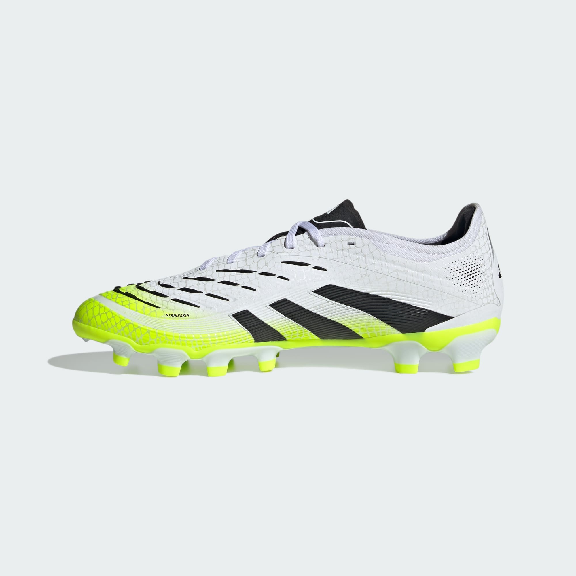 Aie la certitude que tu vas marquer avec la chaussure adidas Predator conçue pour faire trembler les filets. Ces chaussures de football professionnelles sont dotées d’une tige HybridTouch flexible avec des ailerons Strikeskin en caoutchouc adhérent qui aident à contrôler chaque frappe du ballon. Retourne-les et tu découvriras une semelle extérieure polyvalente pour assurer ta stabilité sur le gazon artificiel et l'herbe sèche.