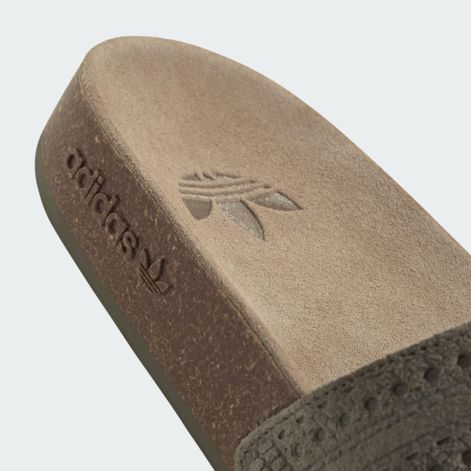 Une claquette Adilette premium avec une assise plantaire en suède véritable.