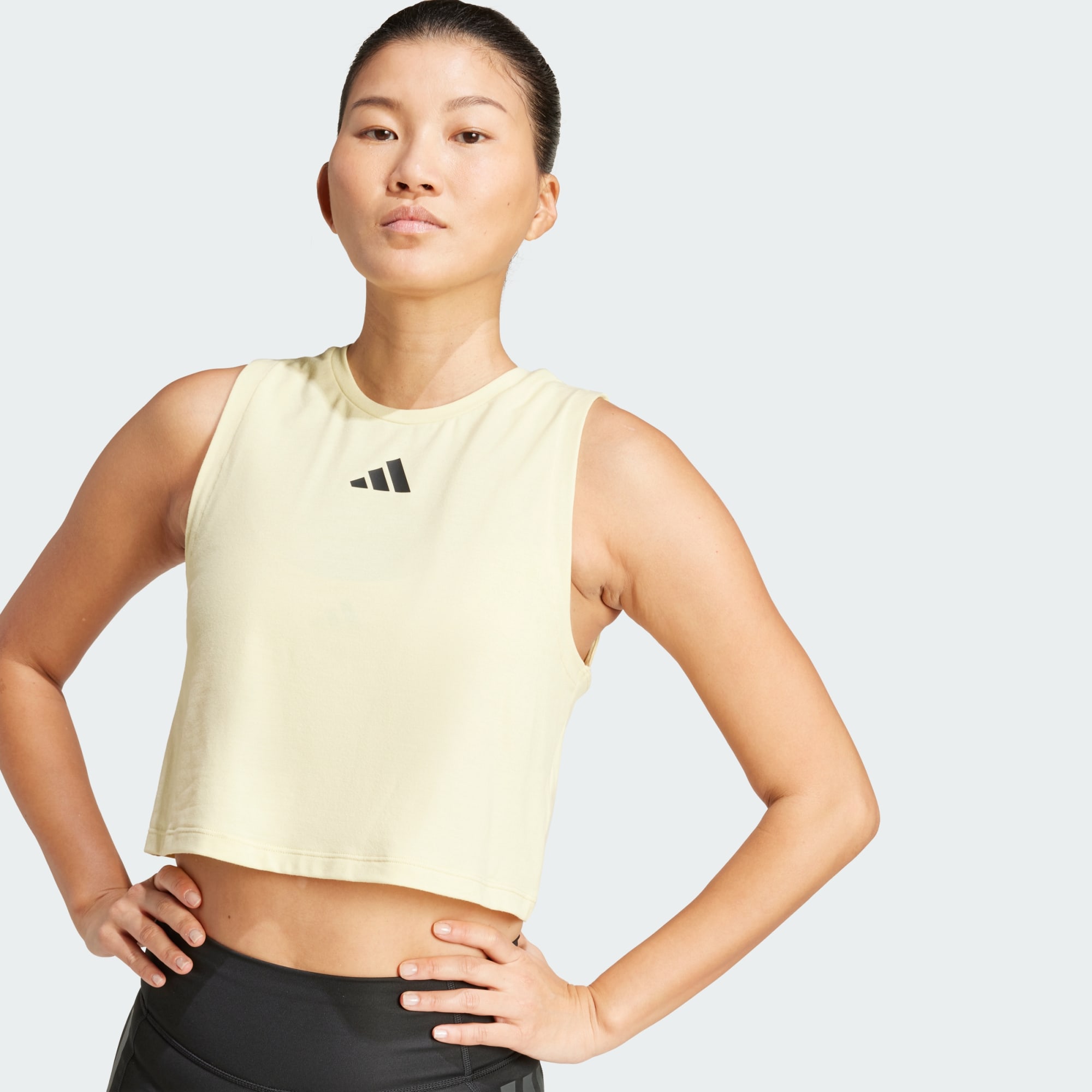 Un débardeur court doté de la technologie CLIMACOOL pour te garder au frais, au sec et parée pour ta session.