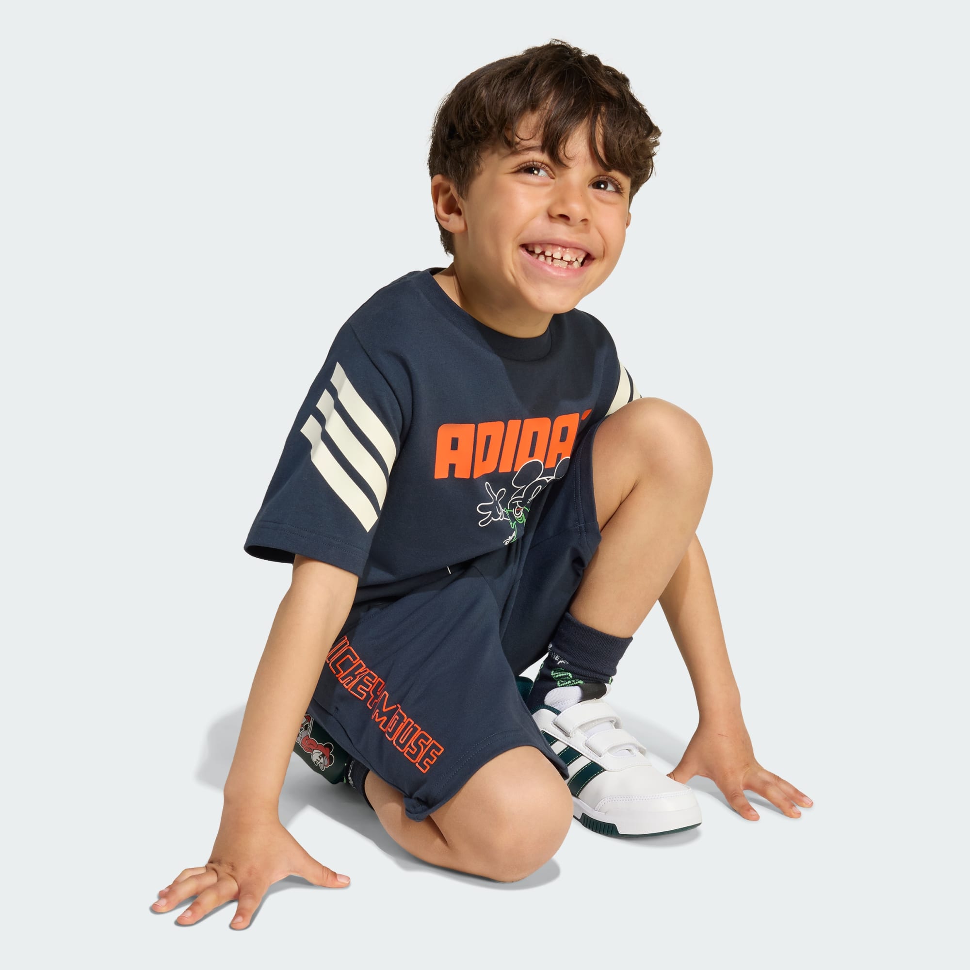 adidas fait équipe avec Disney pour créer un look sport et amusant pour enfants. Cet ensemble comprend un t-shirt à col ras-du-cou confectionné dans un mélange de coton stretch et un short à taille mi-haute avec une taille élastique. De la cour d'école au jardin, les enfants apprécieront le motif brillant de Mickey Mouse associé aux lettres audacieuses et aux 3 bandes emblématiques d'adidas.