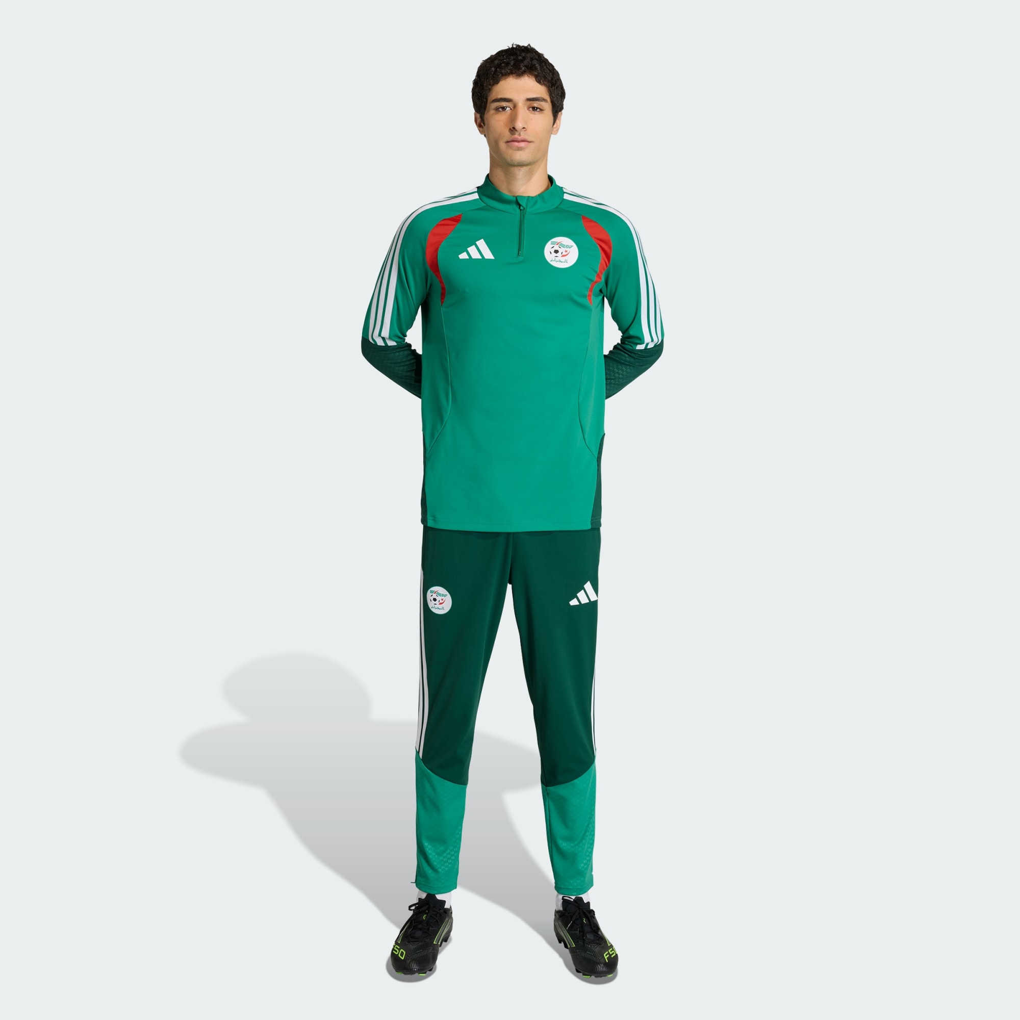 Entre sur le terrain avec fierté avec le haut d'entraînement Algérie 26. Inspiré du design traditionnel algérien, ce haut est fait pour ceux qui exigent l'excellence pendant leurs séances d'entraînement. Les inserts en maille sur la poitrine favorisent l'aération, pour te garder au sec et à l'aise lors des exercices intenses. Le zip avant le rend facile à porter, tandis que la coupe slim épouse les contours du corps pour une silhouette sport. Le tissu stretch assure une coupe et une performance supérieures, pour des mouvements fluides afin que tu te concentres sur ton jeu. La technologie Formotion intégrée est conçue pour libérer tes mouvements et non les restreindre, pour plus de précision sur le terrain. Les éléments de design en relief apportent une touche sophistiquée, te permettant de te démarquer à la fois sur le terrain et en dehors. Le logo et le blason de la fédération thermocollés sont accompagnés des 3 bandes classiques et rendent hommage à un héritage iconique. Que tu t'entraînes pour le prochain grand match ou que tu profites simplement d'un match improvisé, ce haut t’aide à relever tous les défis avec le sourire. Découvre l’avenir du football à l’entraînement avec adidas, où l'héritage rencontre l'innovation.