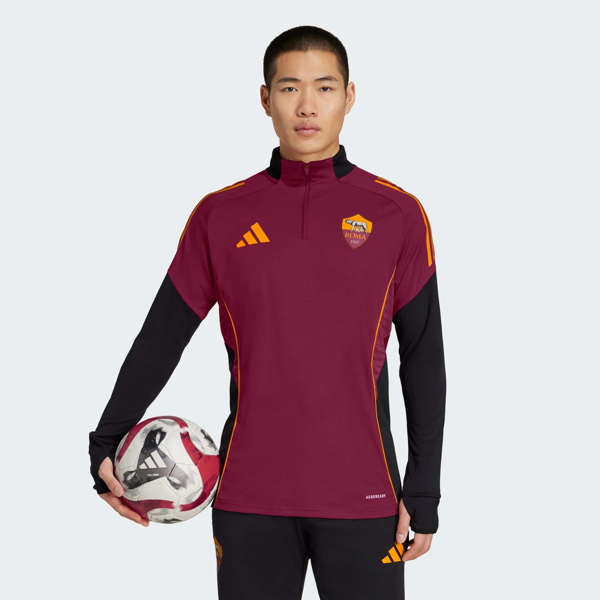 Incarne un champion de football lors de séances par temps froid avec ce haut d’entraînement AS Roma Tiro 25 Competition adidas. Son design élégant t'assure une coupe profilée quand tu l'enfiles par-dessus ton maillot, et un zip 1/4 te permet de l’enlever en un rien de temps. Les manches longues peuvent recouvrir tes mains grâce aux passe-pouces aux poignets.