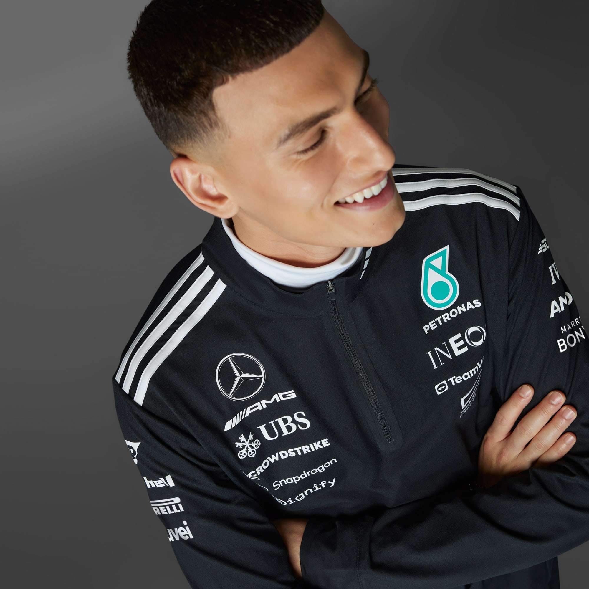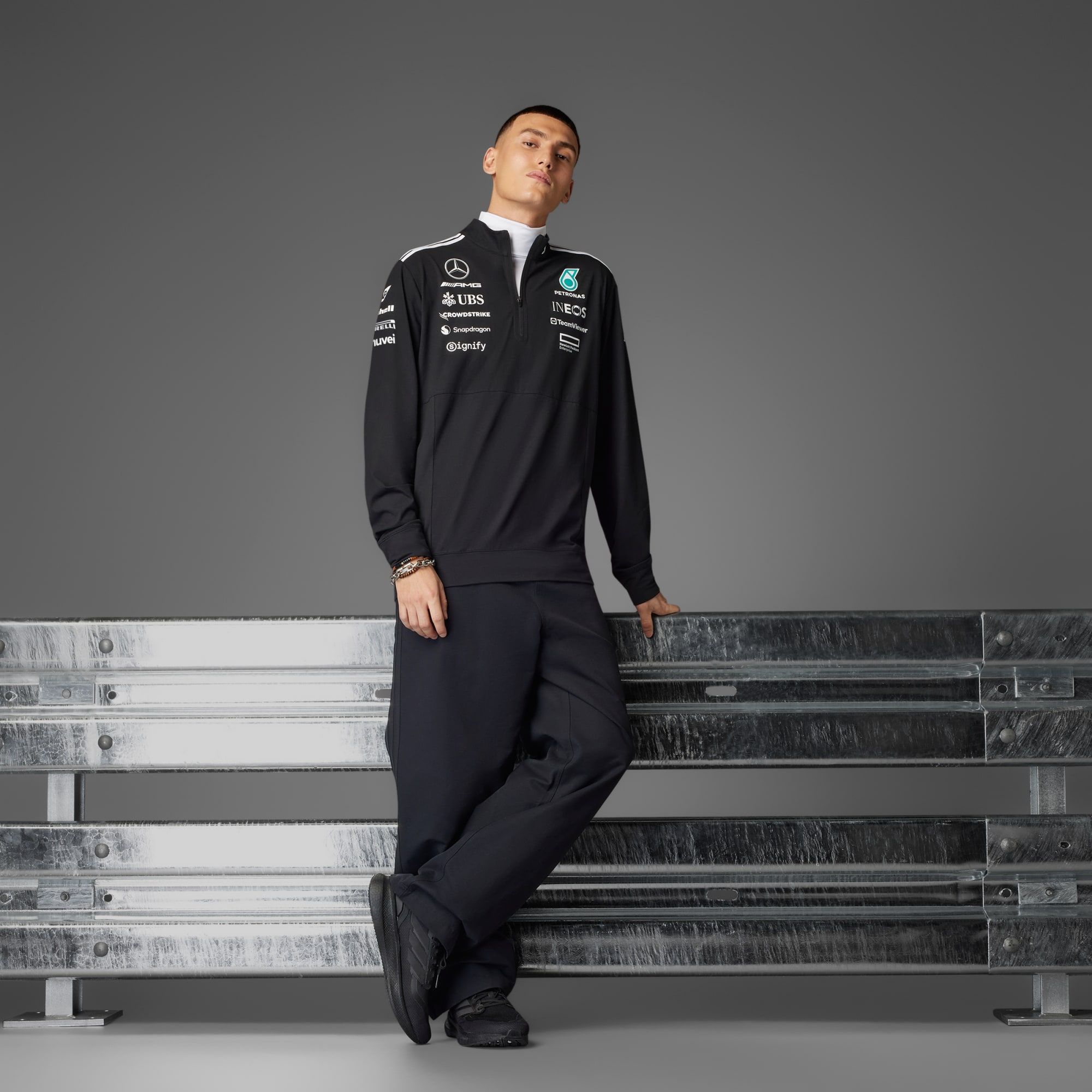 La collection Teamwear adidas x Mercedes AMG PETRONAS F1 combine style et performance pour repousser les limites des sports mécaniques.
