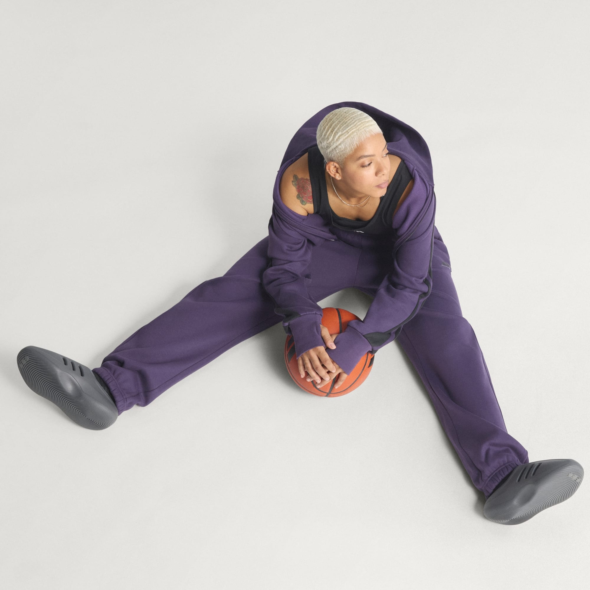 Un jogger de basketball conçu en partie à base de matières recyclées et renouvelables.