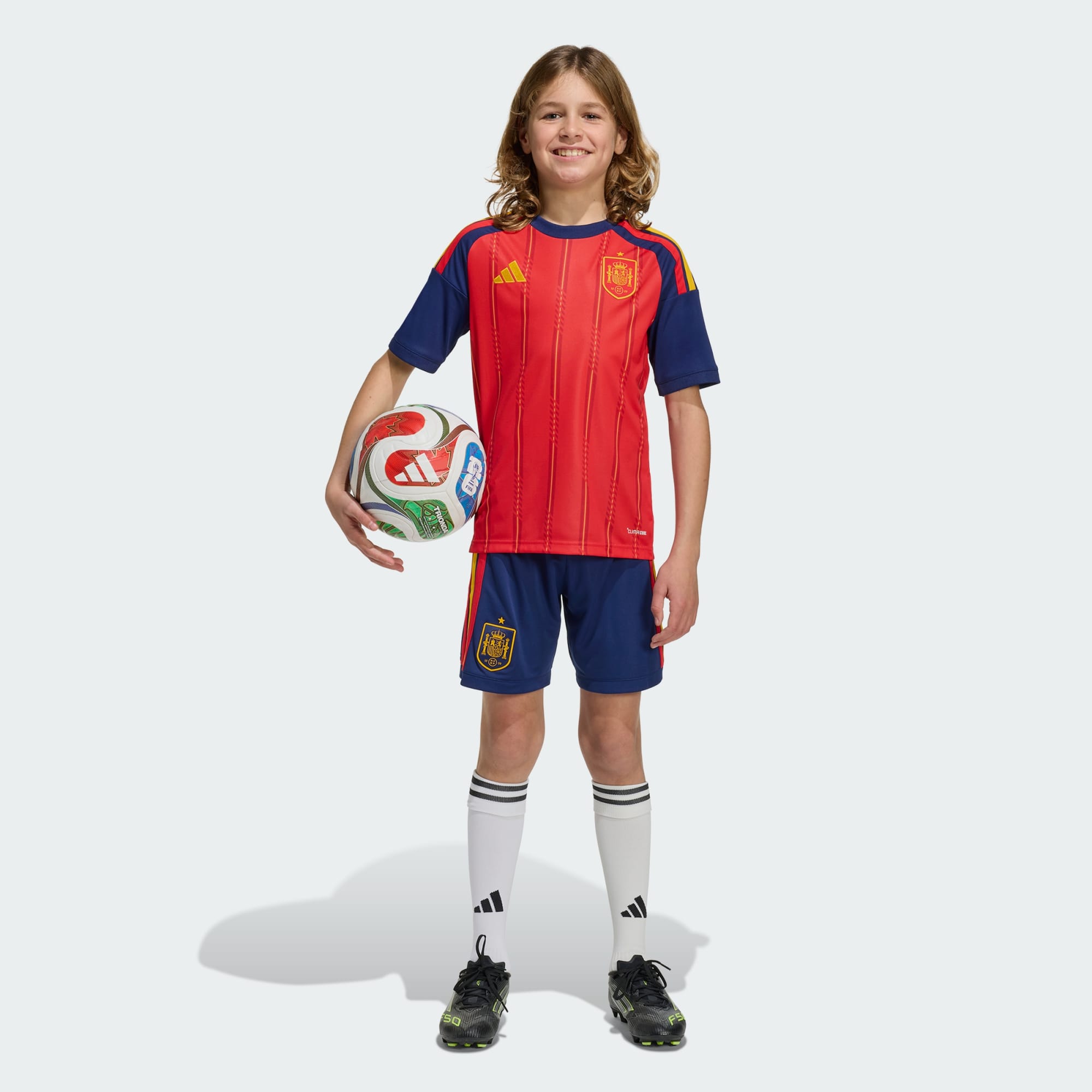 Le kit domicile de l’Espagne 26 Junior permet d’entrer avec fierté sur le terrain. Inspiré par l'énergie vibrante du drapeau espagnol, cette tenue reflète son essence sur le terrain et en dehors. Conçu pour les jeunes passionnés de football, il allie héritage et fonctionnalités avancées. La technologie Climacool évacue la transpiration pour rester au frais, au sec et focus, pour marquer des buts ou encourager l’équipe depuis les tribunes. Avec une attention particulière aux détails, la tenue présente le blason du club iconique, montrant ton allégeance au riche héritage du football espagnol. Le col côtelé ajoute une touche classique, ce qui en fait un excellent choix pour les jeunes qui aiment exprimer leur individualité. Un kit qui représente l'esprit du football espagnol et permet de jouer avec confiance et style. Avec adidas, chaque match célèbre le talent et la tradition.