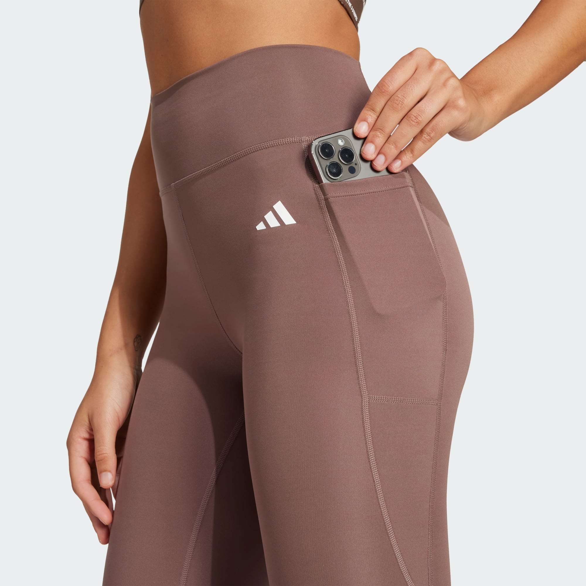 La matière stretch et élégante de ce legging de training suit chacun de tes mouvements. Enchaîne les fractionnés ou les cours de spinning en toute confiance grâce à sa taille qui reste bien en place et ses coutures thermocollées qui assurent un maintien parfait. Avec la technologie adidas AEROREADY, tu restes au sec et focus sur tes objectifs. Une poche dissimulée te permet de garder tes effets personnels à portée de main, pour continuer tes activités après l'entraînement.