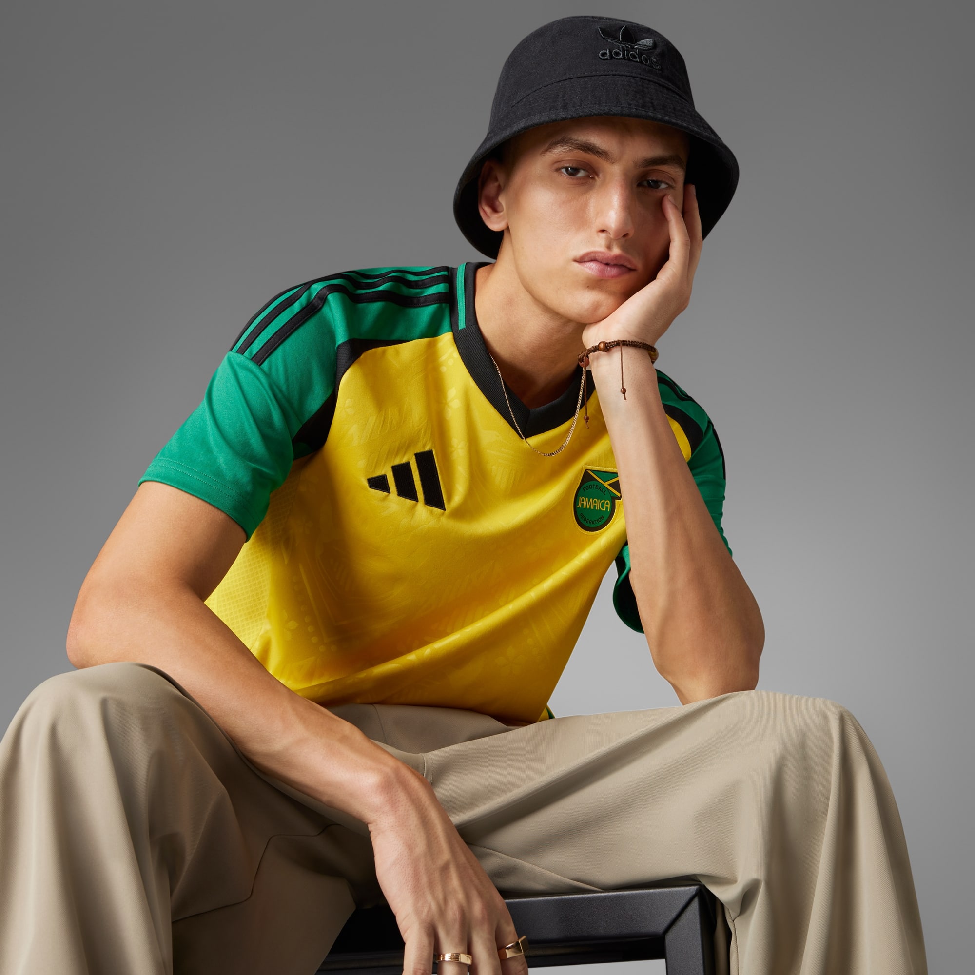 Un maillot domicile qui rend hommage aux racines de la Jamaïque, fabriqué en matières recyclées.