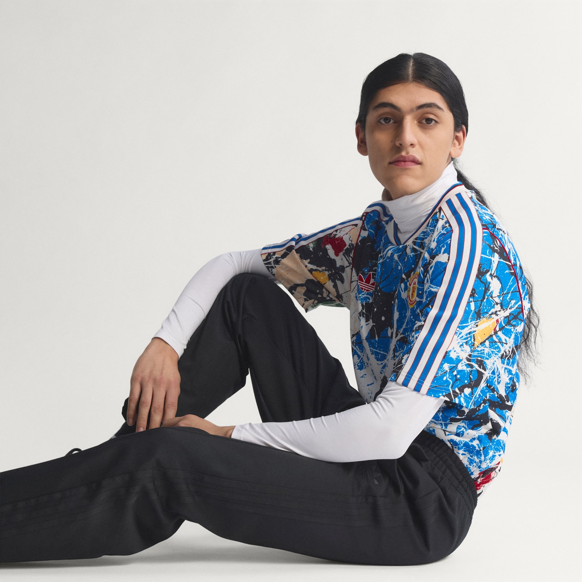 Découvre le nouveau maillot MUFC x The Stone Roses, inspiré par les tâches de peinture rebelles sur la pochette du vinyle I Wanna Be Adored.