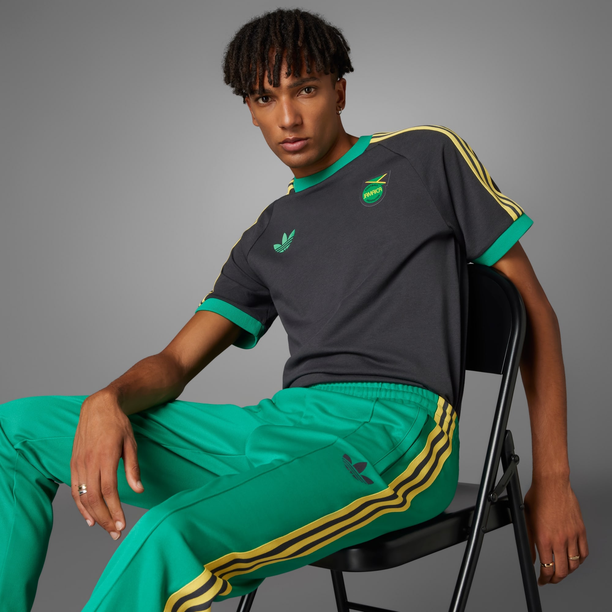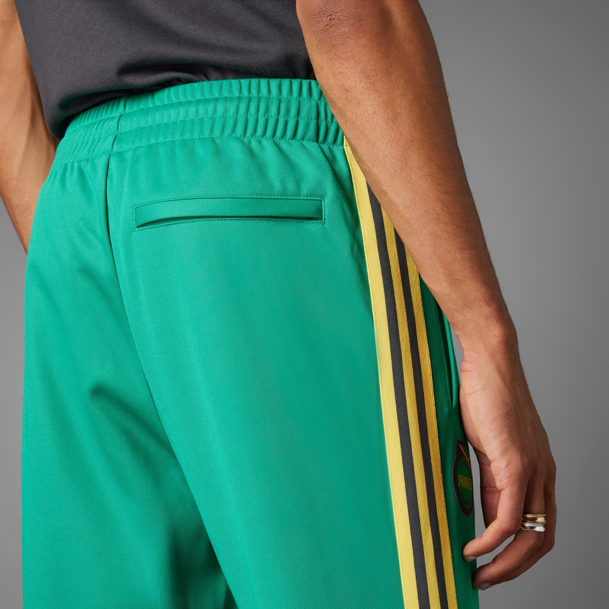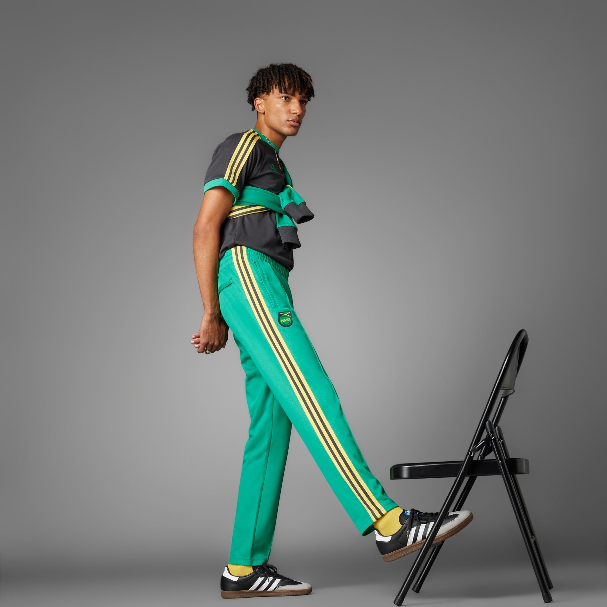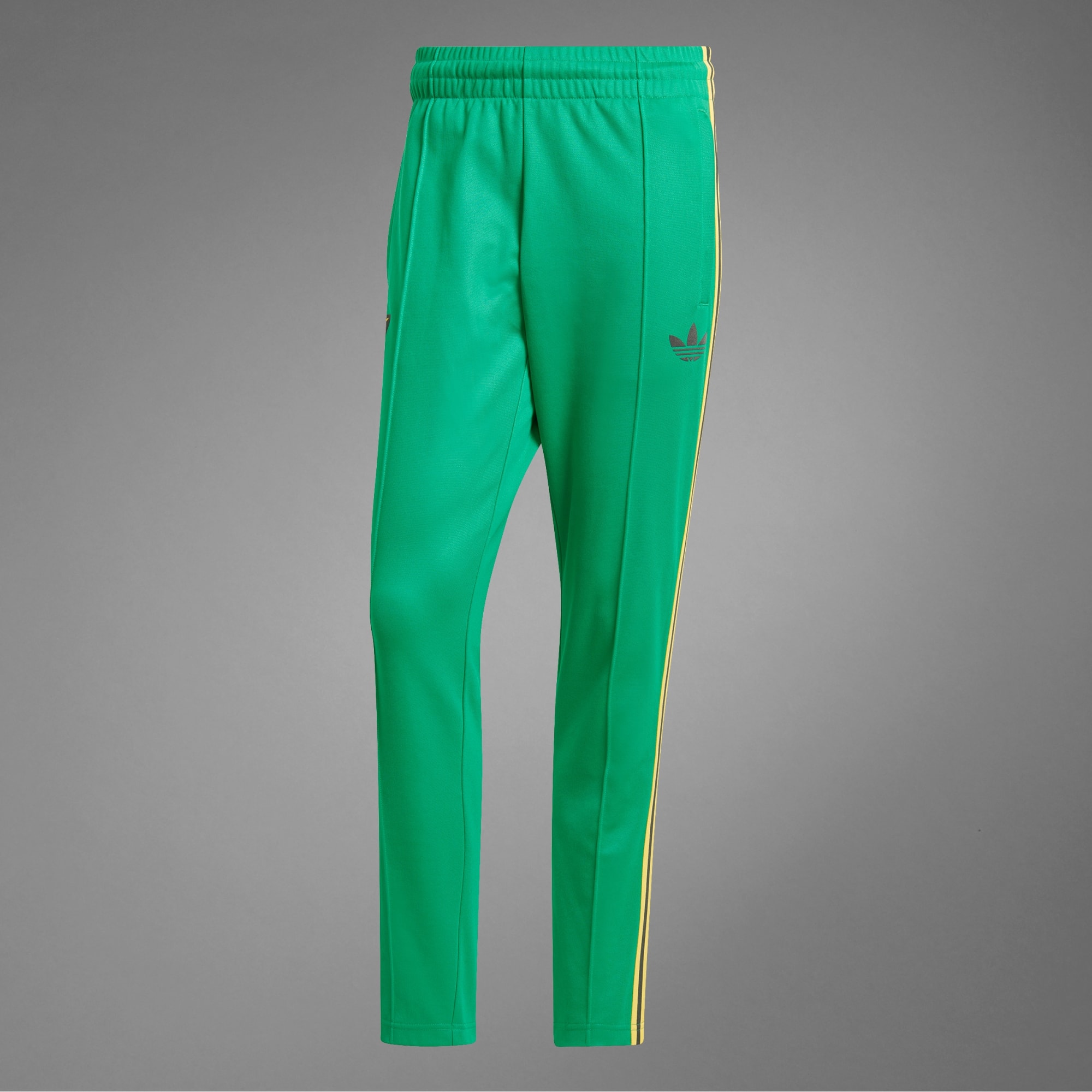 Une véritable icône Originals réinventée. Le pantalon de survêtement Jamaïque Beckenbauer revisite les tenues de football avec une silhouette moderne, des couleurs tendance et des matières de saison. Avec un design inspiré du monde du football, ce pantalon au look vintage rend hommage à la culture jamaïcaine, avec le blason de l'île imprimé sur fond vert. Orné de bandes jaunes stylées, il présente une coupe slim pour une touche rétro. Rends tes tenues plus fun avec un pantalon de survêtement qui fera tourner les têtes. Ce produit est composé à 70 % minimum d'un mélange de matériaux recyclés et renouvelables.