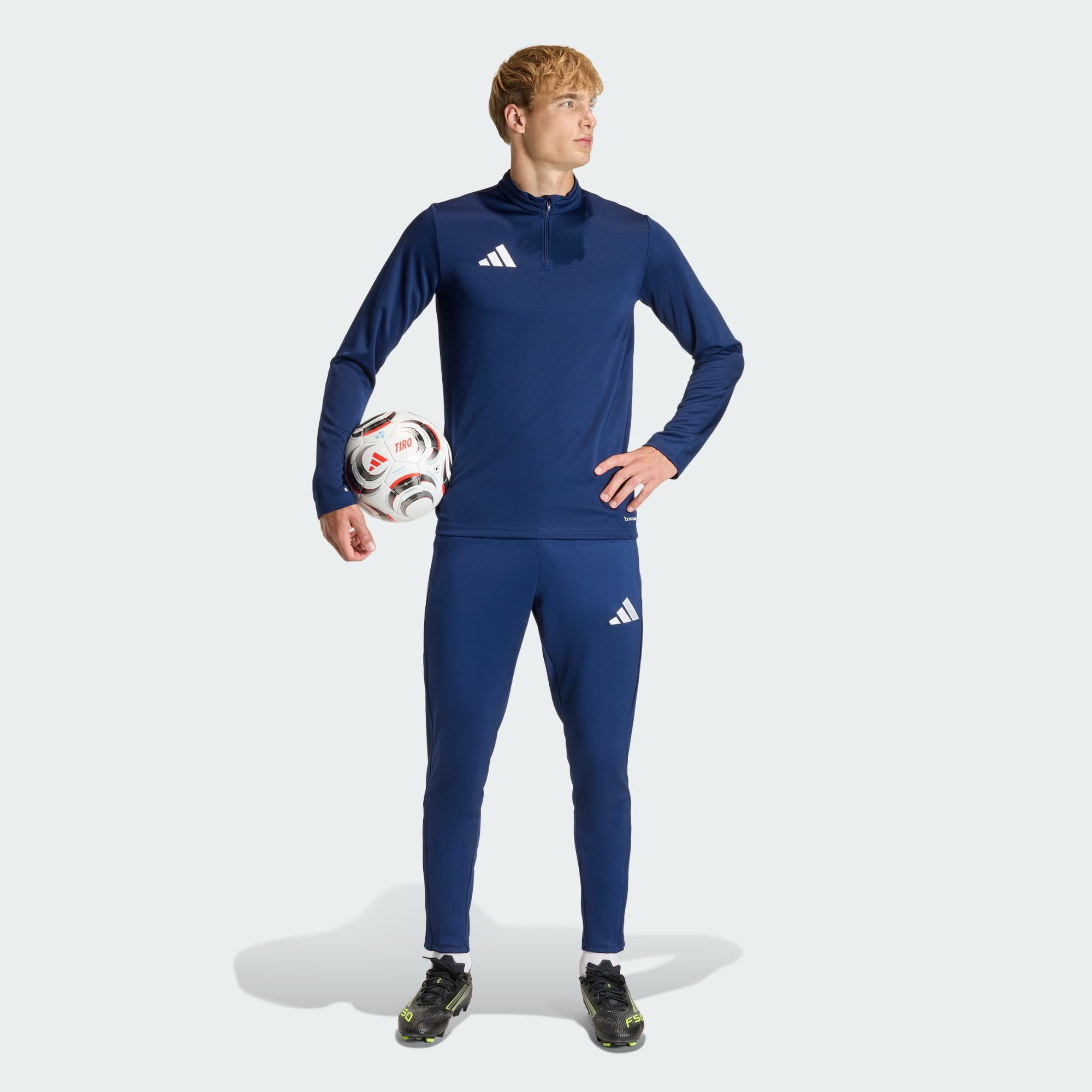 Conçu pour ceux qui vivent et respirent le football, le pantalon d'entraînement Entrada26 combine style et fonctionnalité. Que tu perfectionnes tes compétences ou que tu profites d'un match décontracté, tu peux compter sur ce pantalon. RESTE AU FRAIS. AU SEC. TOUT EN CONFORT. La technologie CLIMACOOL évacue la transpiration pour te garder au frais et au sec, sans aucune distraction. Elle est confectionnée avec un tissu maille double robuste pour résister aux rigueurs du jeu. La coupe standard offre un confort sans restriction, permettant des mouvements naturels pendant que tu t'entraînes ou lors d’un match. La taille mi-haute avec cordon de serrage est ajustable et assure un bon maintien pendant les activités intenses. Le logo Badge of Sport brodé ajoute une touche adidas signature, tandis que le zip au niveau de la cheville permet de l'enfiler et de l'enlever facilement lorsque des changements rapides sont nécessaires. Sa coupe est aussi pratique si tu préfères une coupe plus ample au niveau des chevilles. Également disponible en grandes tailles, ce bas de survêtement d'entraînement polyvalent combine sans effort performance et style pour les joueurs de différents niveaux.