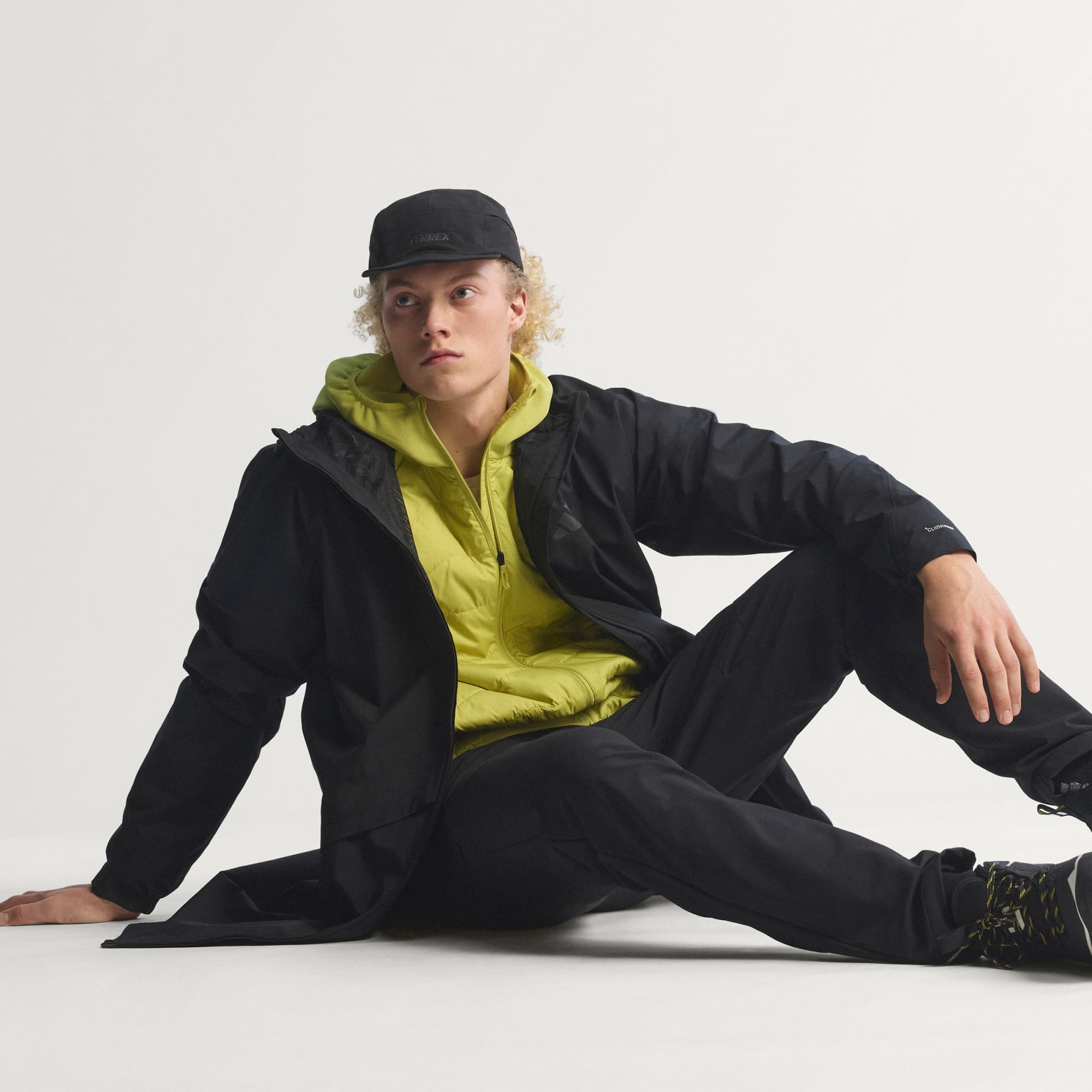 - Couche externe : Extérieur : 100 % polyester (100 % recyclé). Intérieur : 100 % polyuréthane thermoplastique. Partie en mesh : 100 % polyester (100 % recyclé). Doublure des manches : 100 % polyester (100 % recyclé).