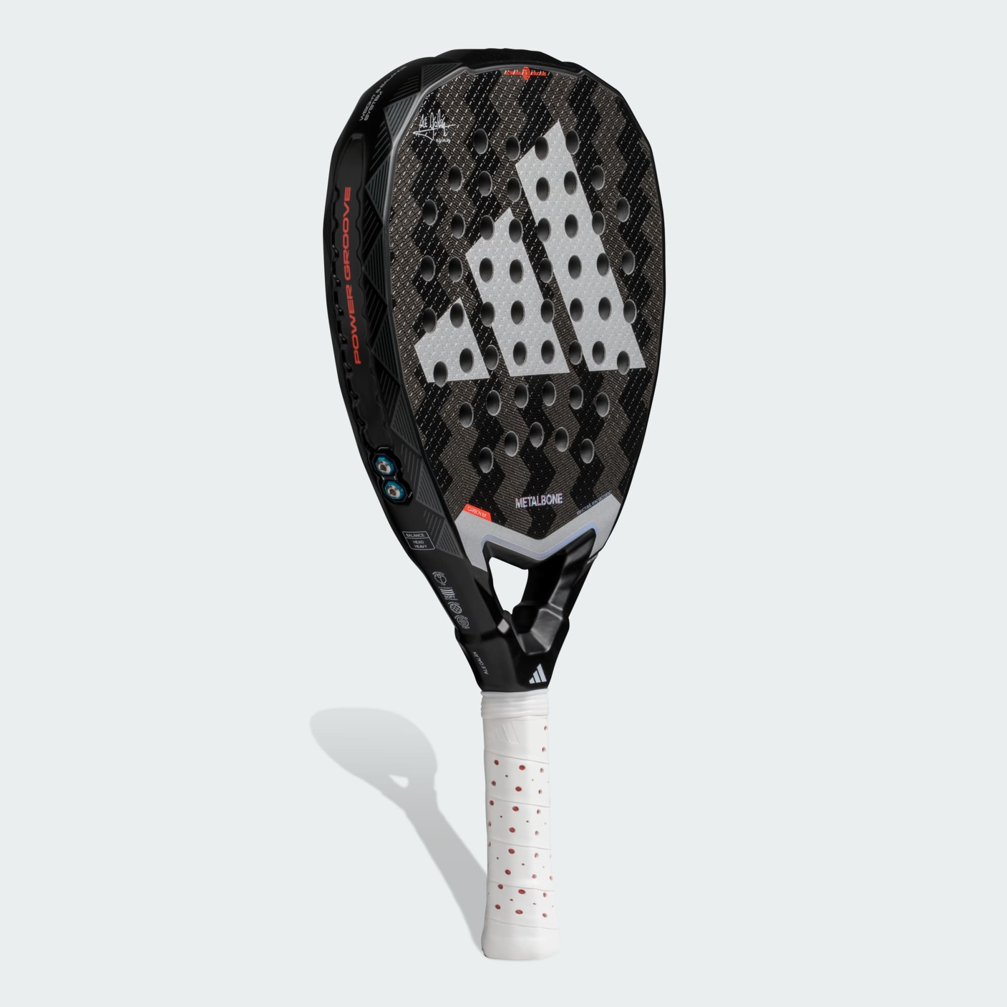 La raquette de padel Metalbone 3.4 est l'une des dernières raquettes de padel d'Ale Galán, conçue pour élever la technologie du padel vers de nouveaux sommets. Dotée d'un système innovant de poids et d'équilibrage, elle permet une personnalisation précise pour s'adapter à ton style de jeu. Combiné au design en polyèdre du cadre et du noyau, le manche étendu Power Extra Grip offre une puissance exceptionnelle. Avec sa forme en losange, ses matériaux premium et sa technologie Power Groove dans le cadre, cette raquette offre un niveau de performance inégalé.