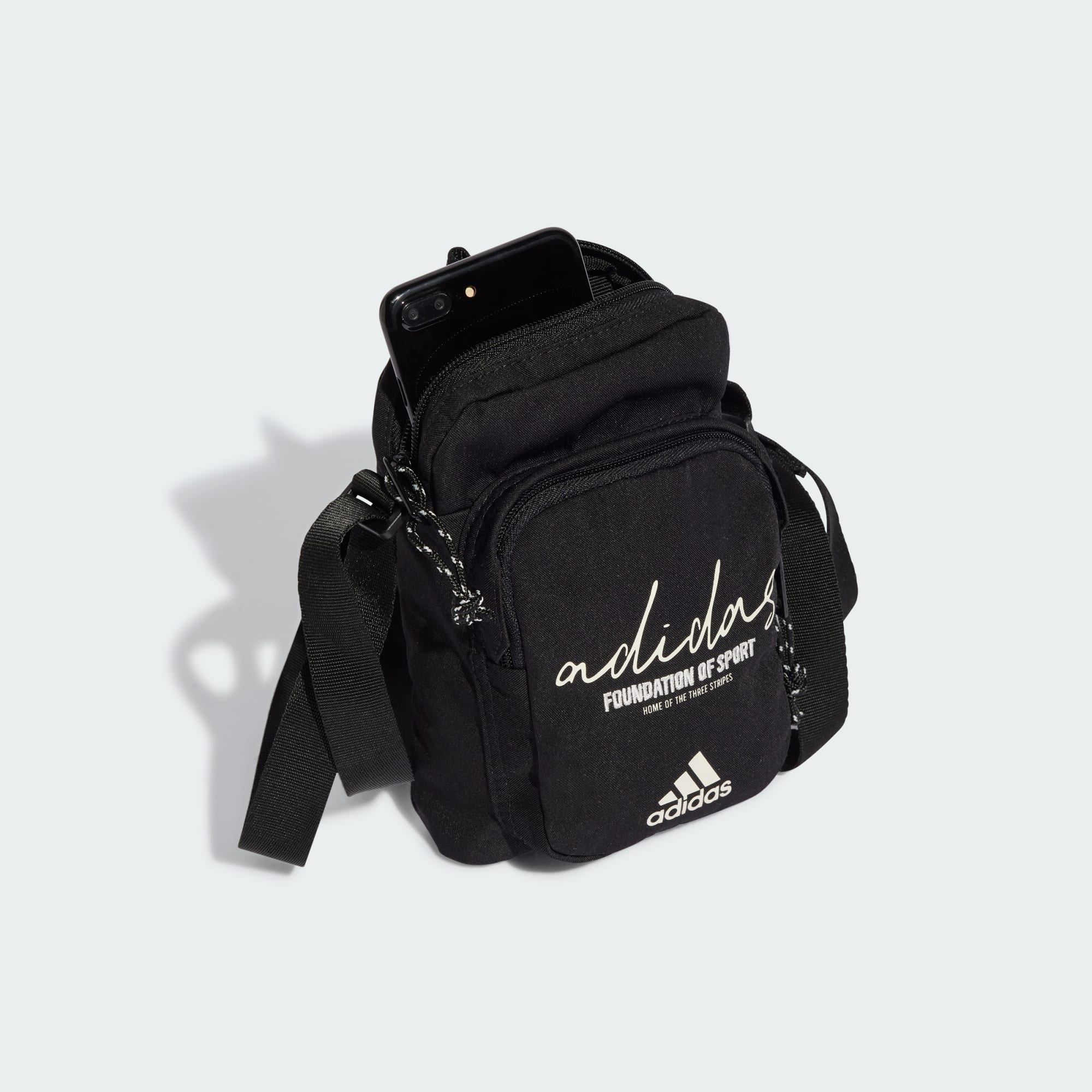 Ce sac adidas polyvalent te permet de ranger intelligemment tous tes petits essentiels. De nombreuses poches organisent tes affaires, tandis qu'une poche en mesh sans fermeture et un crochet en métal résistant t'offrent deux options pour ranger tes clés en toute sécurité et ne jamais les perdre. Confectionné dans une matière résistante, il te suivra au quotidien. Ce produit est conçu avec au moins 50 % de matériaux recyclés. En réutilisant des matériaux déjà créés, nous contribuons à réduire les déchets et notre dépendance aux ressources limitées, afin de réduire l'empreinte écologique des produits que nous fabriquons.