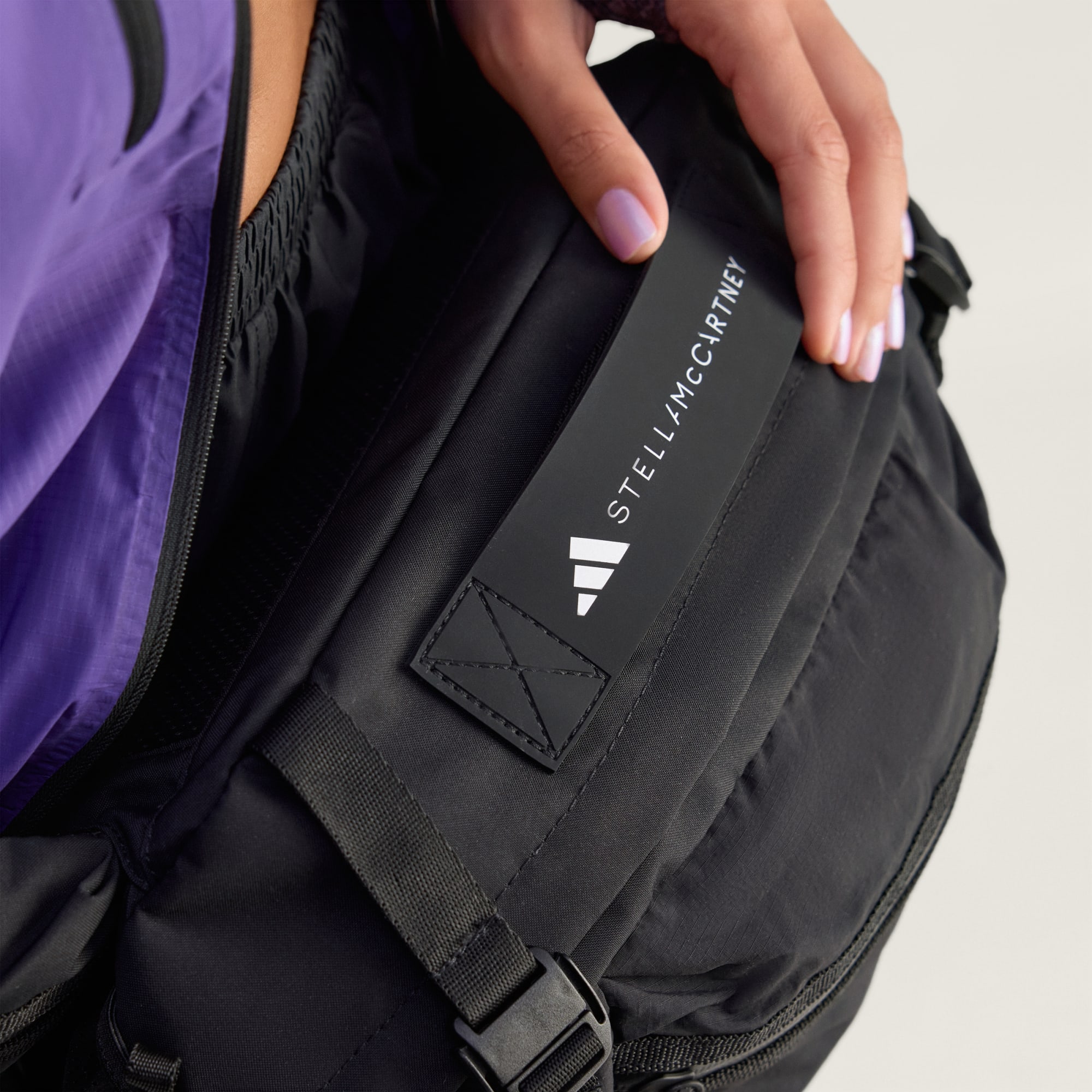 Avec le sac MultiSport adidas by Stella McCartney, tu as plusieurs options. C'est pour cela qu'il a été conçu : une polyvalence totale. Il possède une bandoulière amovible, des sangles supplémentaires à la base pour attacher ton tapis de yoga et des zips à l'intérieur et à l'extérieur pour organiser tes affaires et y accéder facilement. Porte-le à ta façon, en bandoulière ou autour de la taille. Ce sac (ou ces sacs si tu les détaches) évolue en fonction de tes besoins. Ce produit est conçu avec au moins 50 % de matériaux recyclés. En réutilisant des matériaux déjà créés, nous contribuons à réduire les déchets et notre dépendance aux ressources limitées, afin de réduire l'empreinte écologique des produits que nous fabriquons.