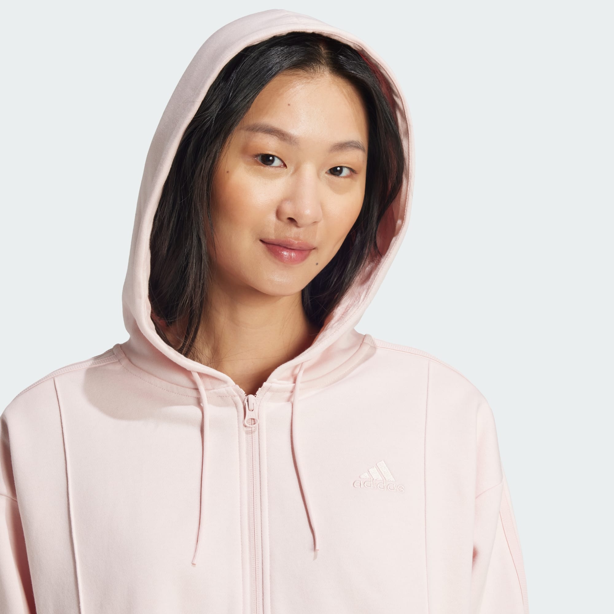 - Zip sur toute la longueur avec capuche réglable par cordon de serrage.