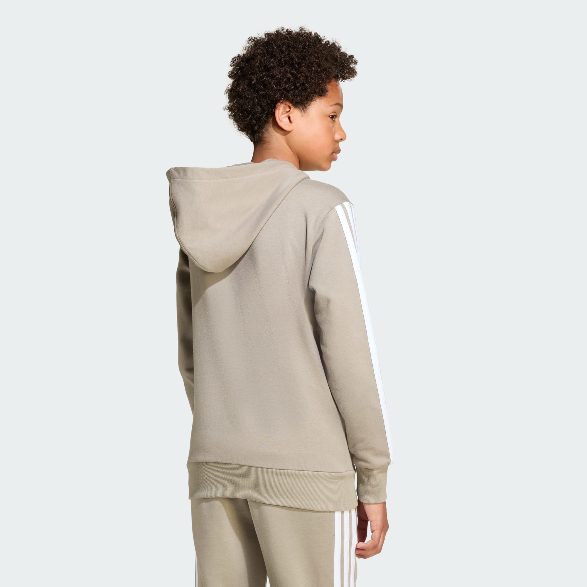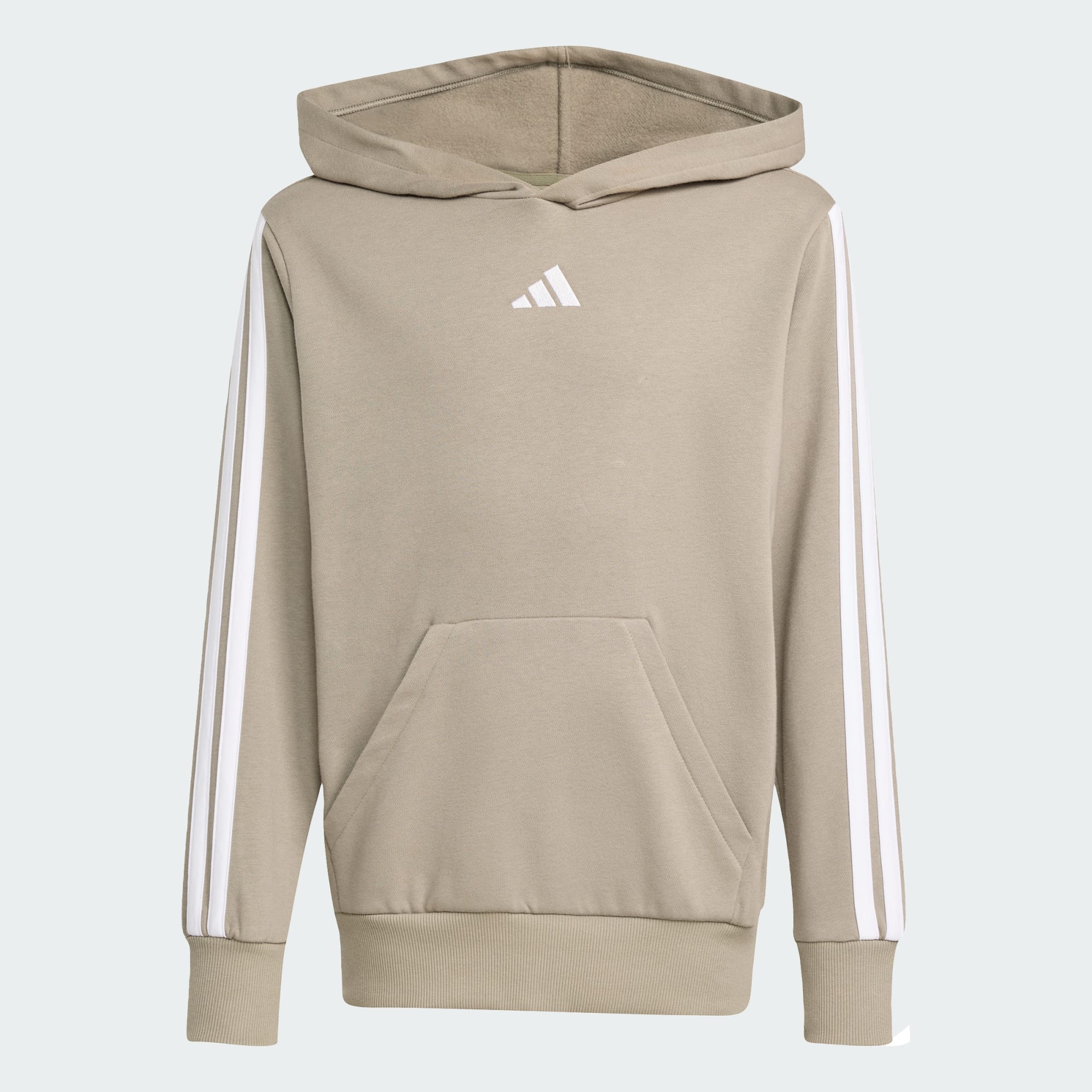 Un sweat à capuche en molleton avec un motif à 3 bandes.
