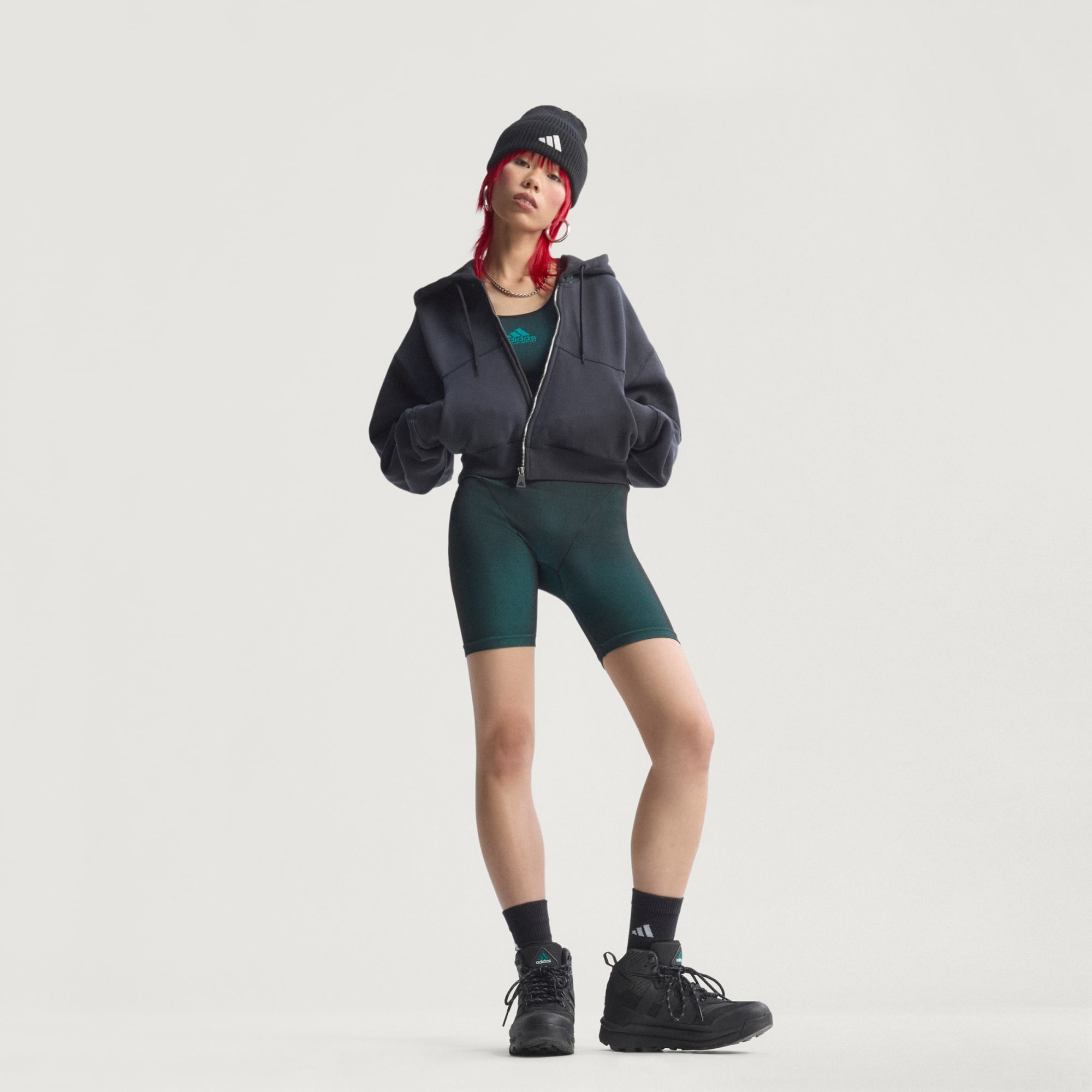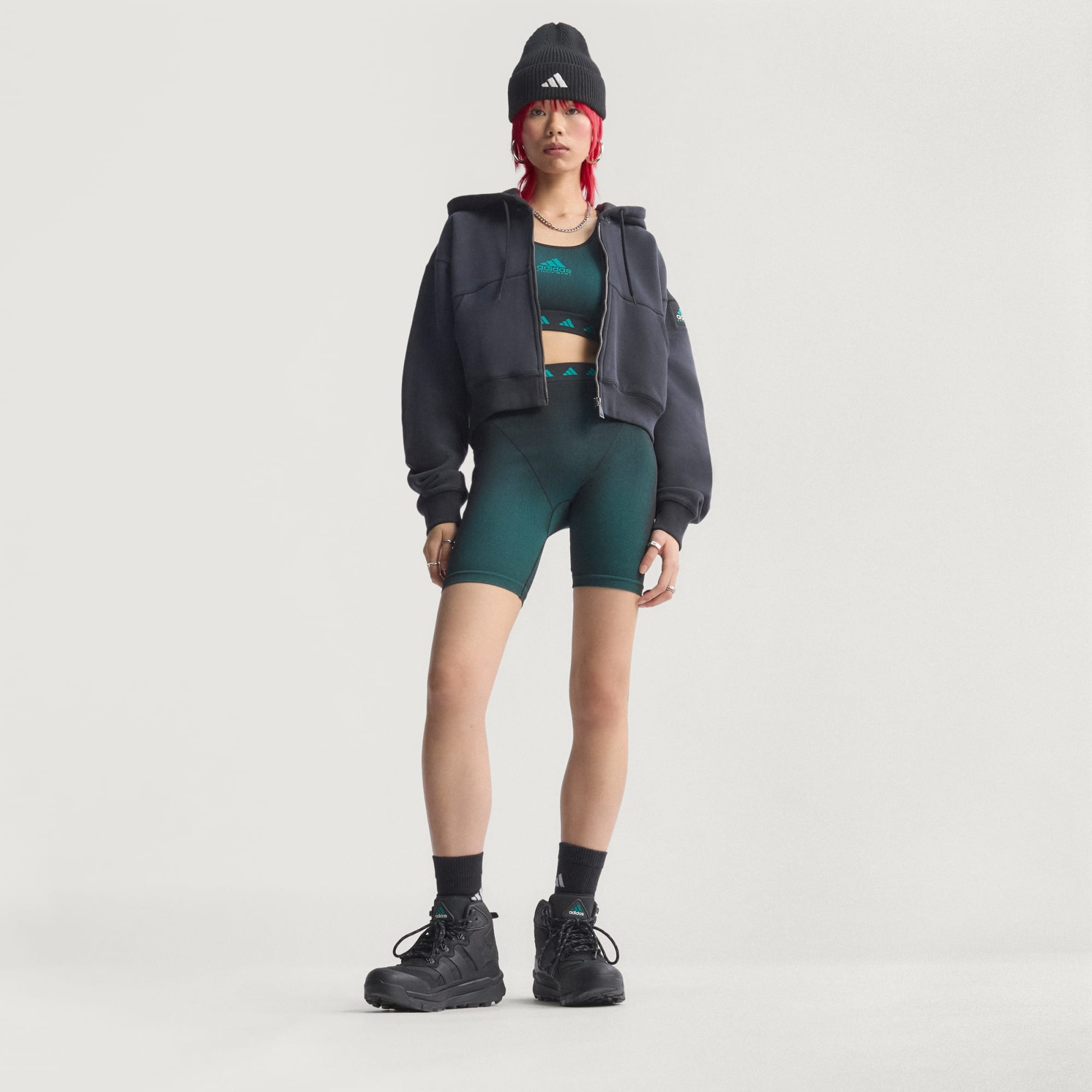 Un sweat-shirt à capuche court signé adidas Equipment.