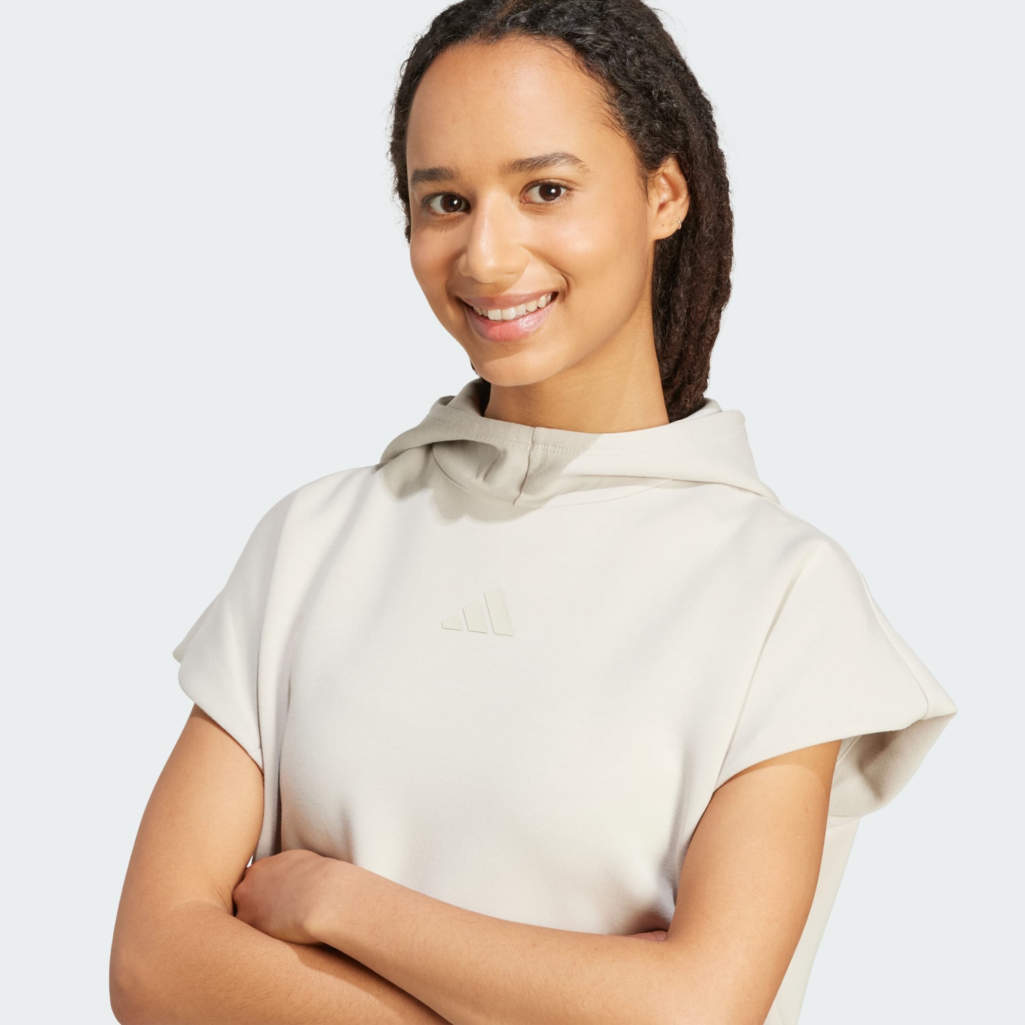 Que tu fasses tes courses ou te rendes à la salle de sport, ce sweat à capuche adidas décontracté est un essentiel casual de ta toute garde-robe. Confectionné en tissu spacer effet peau de pêche, avec du modal intégré pour plus de douceur, il est cosy mais respirant. Idéal pour les journées fraîches ou à porter seul quand le temps se radoucit. Le design sans manches est doté d’une capuche intégrée pour une protection supplémentaire et de fentes latérales pour une sensation de fluidité.