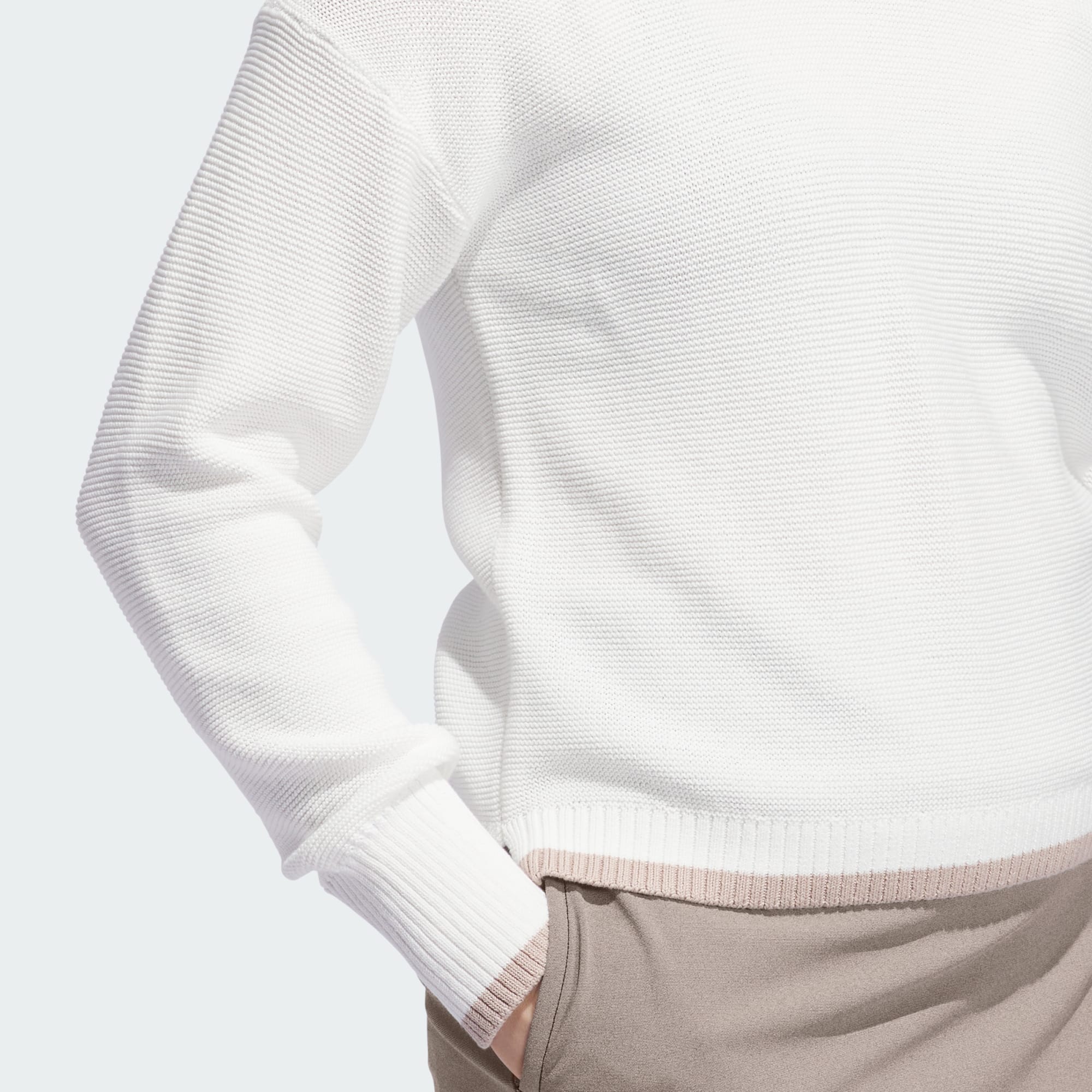 Pour répondre à l’appel du green, ce pull de golf adidas allie style classique et performance tout-terrain. Le coton mélangé doux et la coupe standard favorisent le swing naturel et le confort au quotidien.