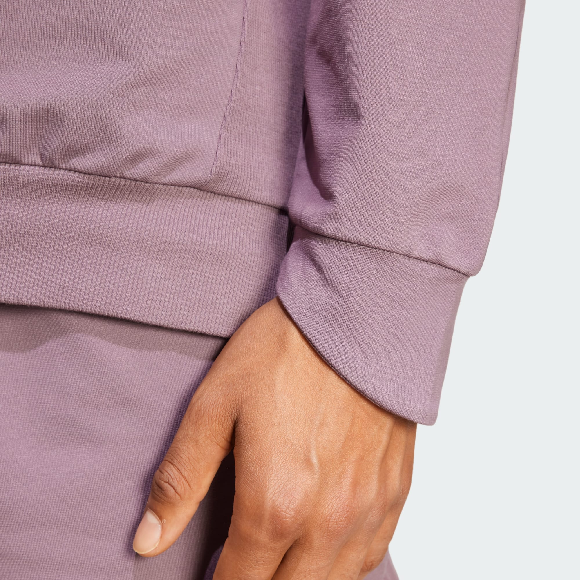 Un sweat-shirt de yoga confortable, conçu en partie à base de matières recyclées et renouvelables.