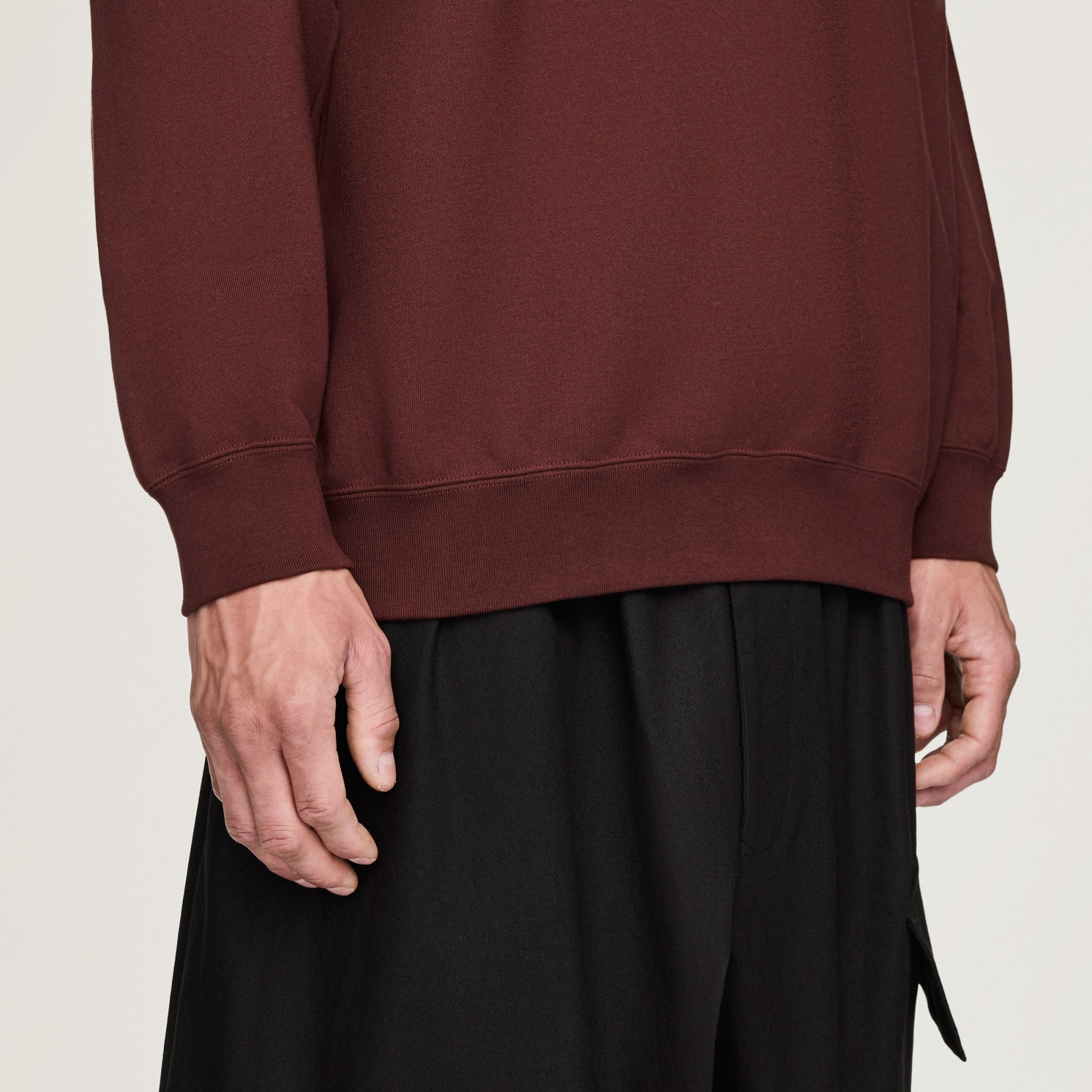 The color and material are great. It’s really soft and the material feels a little denser than regular sweatshirt material. The color purple is a lot nicer looking in person, in my opinion. I like the subdued label. It’s really well made, but the fit is VERY loose. I was swimming in this. I normally wear a size Large. I returned this and ordered a Medium. The Y-3 label is not really my thing unless it’s on sale, which this was. I ordered the pants also, so I’ll probably look like The Grimace if I wear them together, but not so pear shaped. But that’s great since I love the matchy matchy. This is really amazing, but size down unless you prefer that super baggy look.