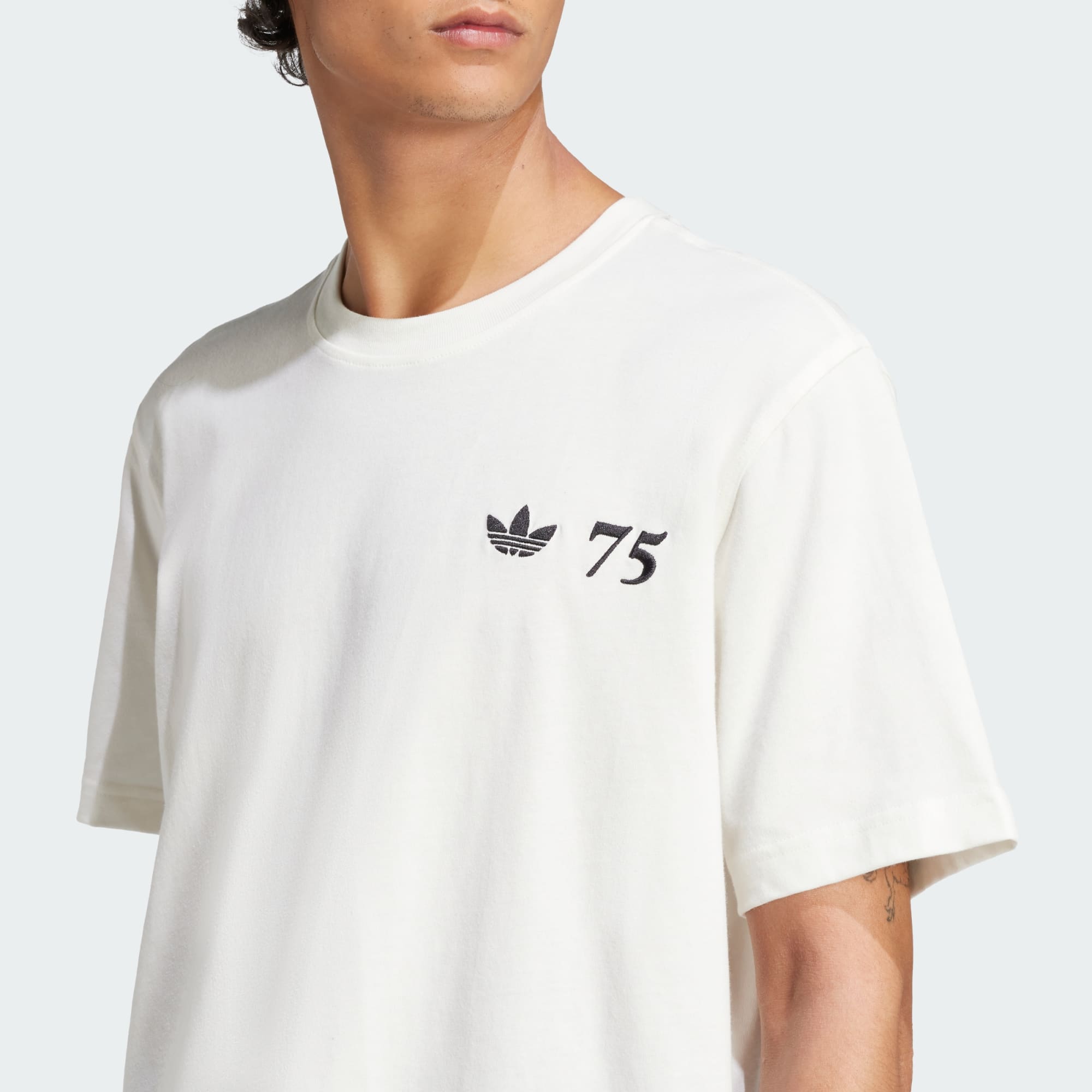 Célèbre le 75e anniversaire d'adidas avec ce t-shirt ample en coton adidas Originals. Simple et classique, il va avec tout. C'est le modèle parfait pour accompagner la sortie de la fameuse runner SL72, l'une des chaussures adidas les plus iconiques, dans une édition spéciale pour cet anniversaire. Porte ce t-shirt assorti à tes nouvelles sneakers et participe aux festivités. Ce produit est confectionné avec au moins 70 % de matériaux recyclés. En réutilisant des matériaux déjà créés, nous contribuons à réduire les déchets et notre dépendance aux ressources limitées, afin de réduire l'empreinte écologique des produits que nous fabriquons.