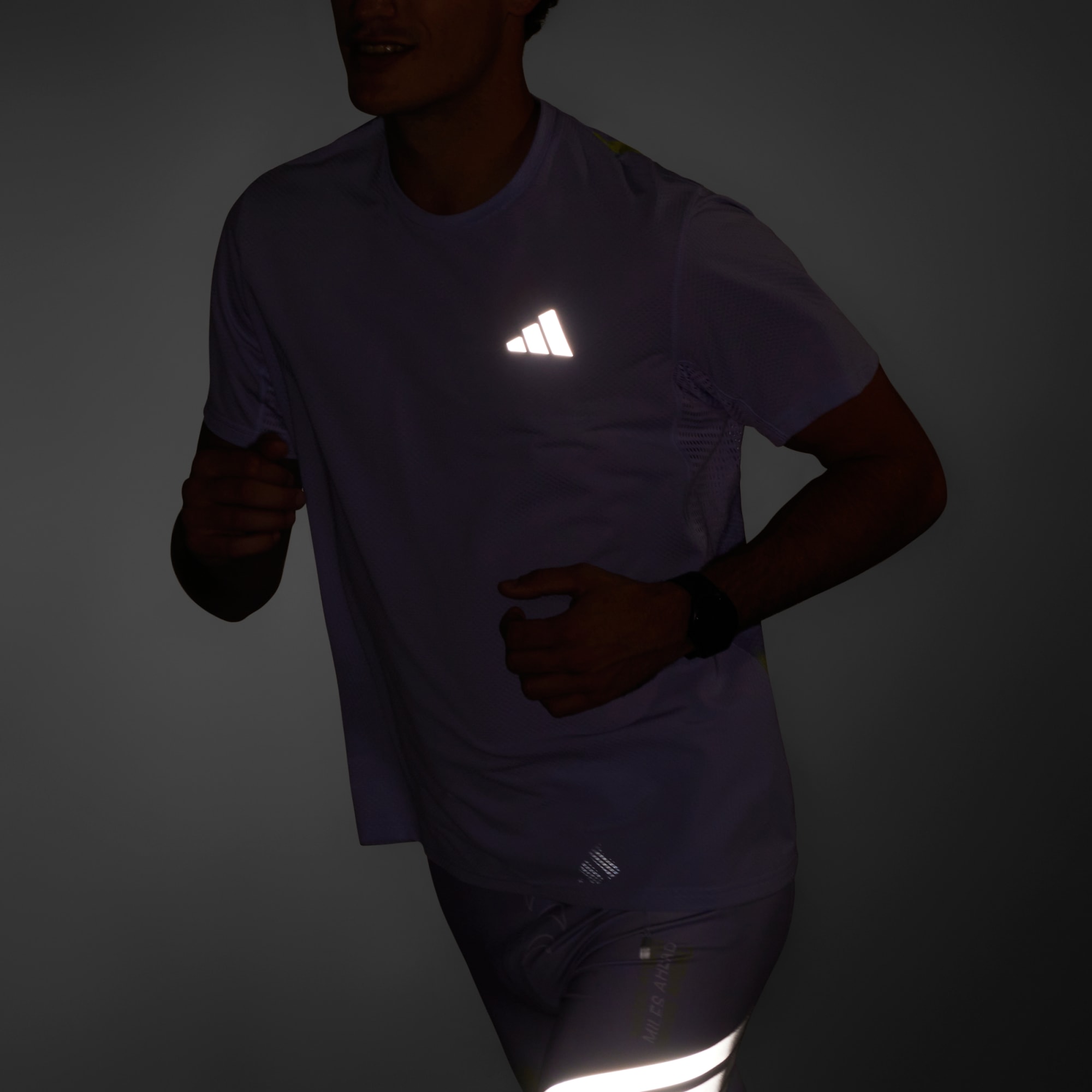 Un t-shirt de running doté de la technologie CLIMACOOL pour te garder au frais et au sec.