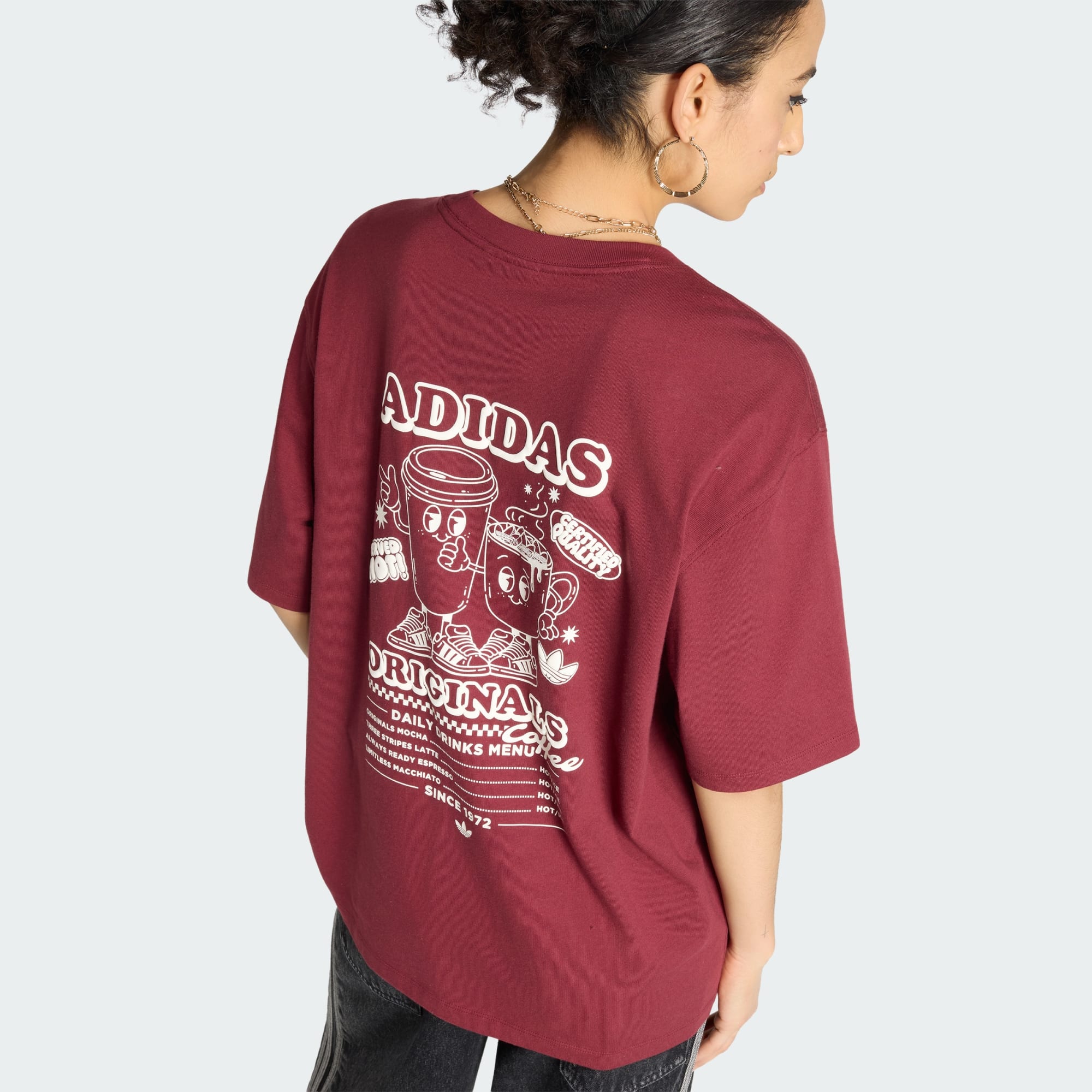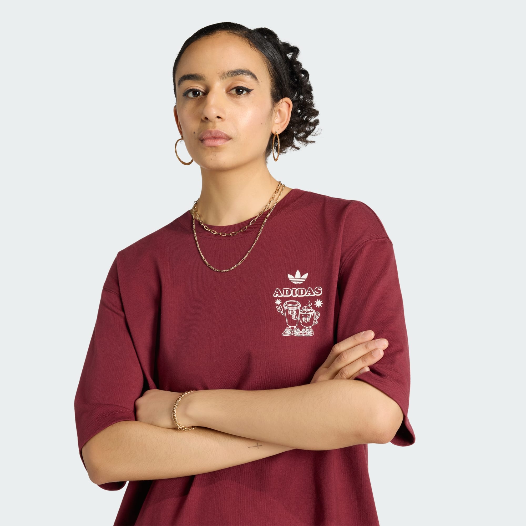 Profite d'un style audacieux et d'un confort naturel avec le t-shirt graphique OS Coffee. Ce modèle adidas Originals est conçu pour celles qui veulent se démarquer, que ce soit pour sortir avec des amis ou pour se détendre à la maison. La coupe oversize apporte un look décontracté, tandis que l'encolure ras-du-cou classique reste intemporelle et facile à porter. Le tissu en jersey doux est agréable sur la peau pour ton bien-être au quotidien. Avec son graphisme unique, il ajoute une touche rebelle à ta garde-robe, célébrant l'esprit optimiste d'adidas.