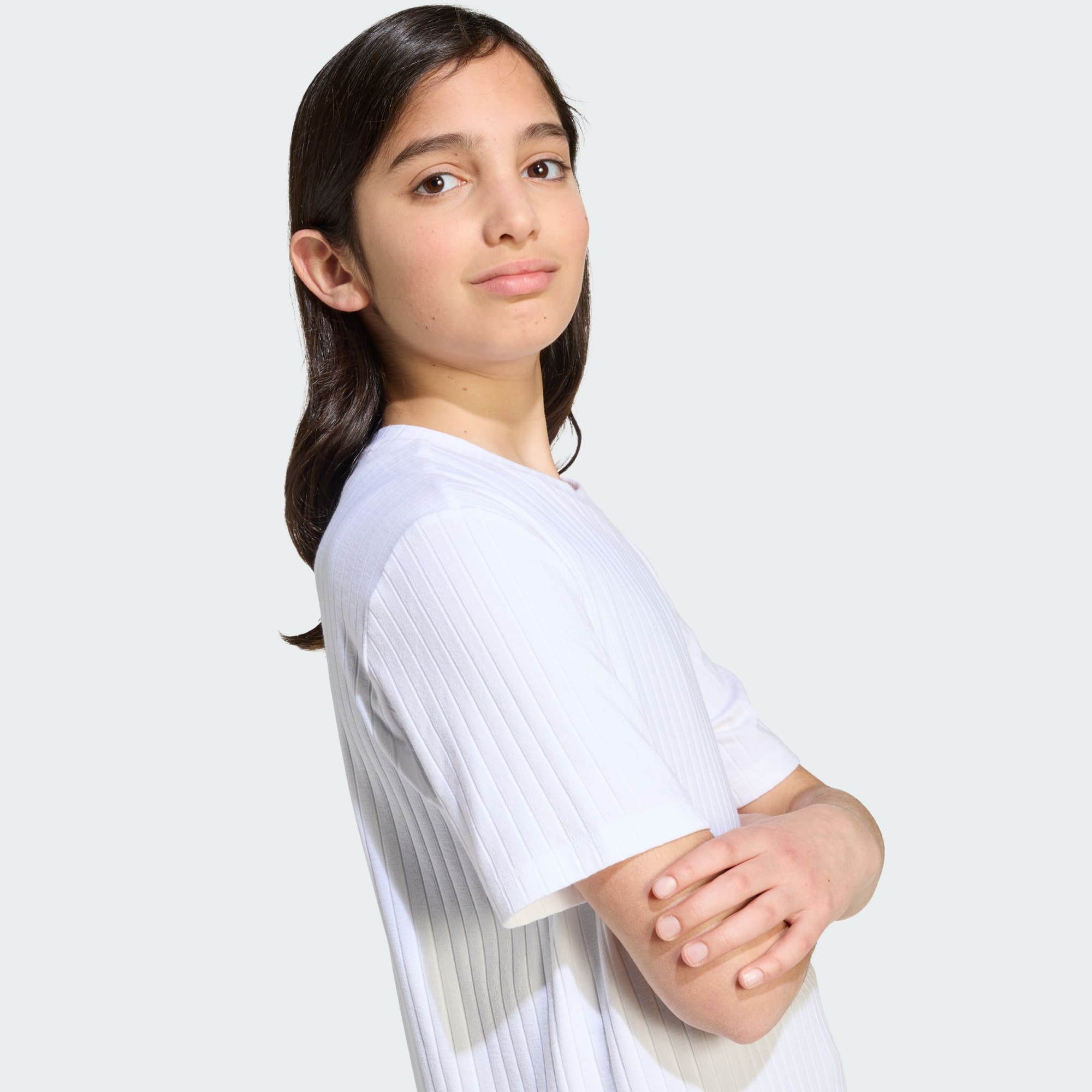 Ce t-shirt adidas junior est un essentiel casual. Conçu en tissu côtelé doux, il va avec tout, du jean au survêtement. Sa coupe ample te permet de bouger librement, tandis que le petit logo Trèfle sur la poitrine ajoute une touche adidas authentique.