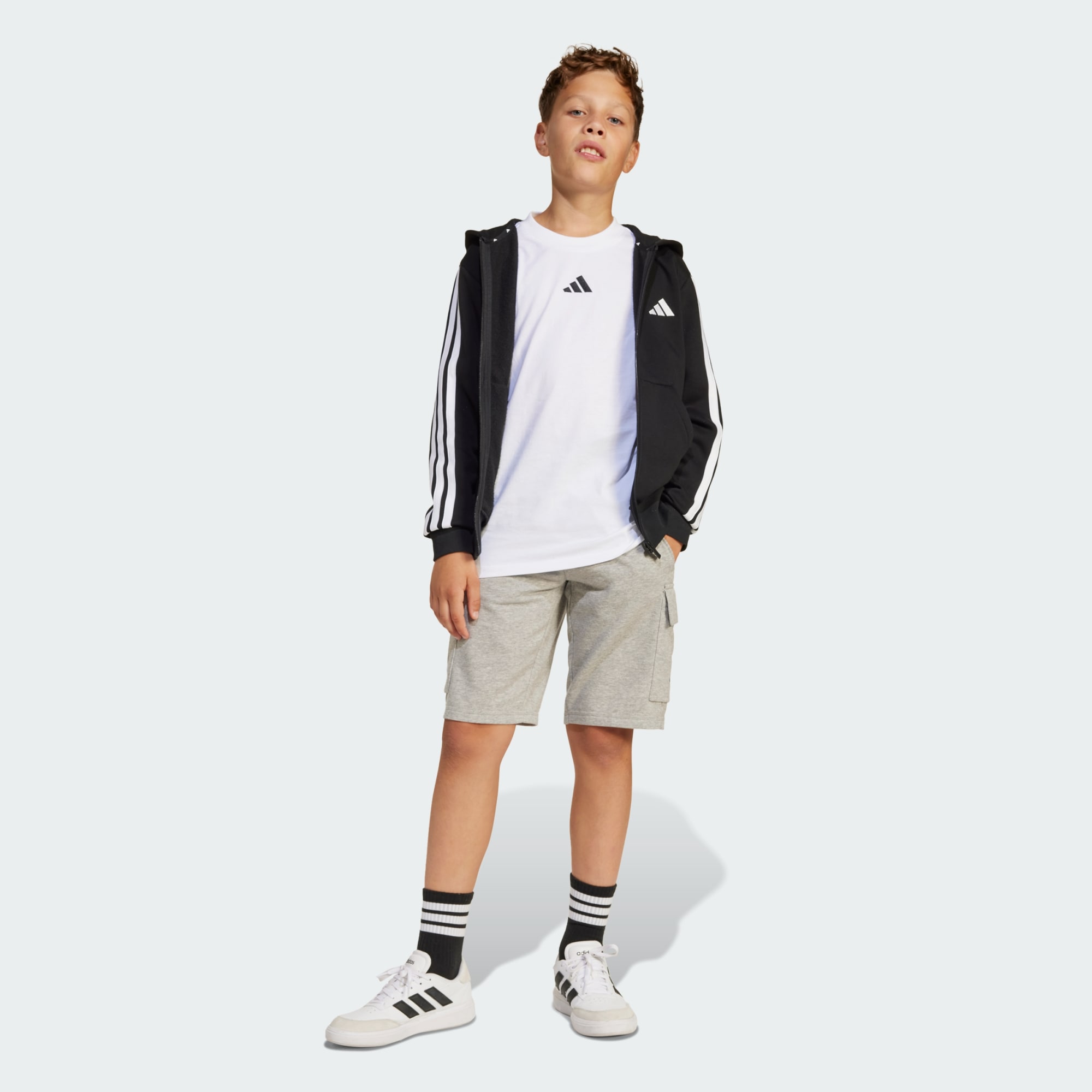 Indispensable pour les journées actives, cette veste à capuche adidas junior est confectionnée en molleton doux pour t'offrir un maximum de confort partout où tu vas. Les bords-côtes aux poignets ajoutent une touche cosy, tandis que le zip sur toute la longueur te permet d'ajuster le niveau de protection. Que tu ailles à l'école ou sortes avec tes amis, cette veste à capuche t'assure un style sporty et casual.