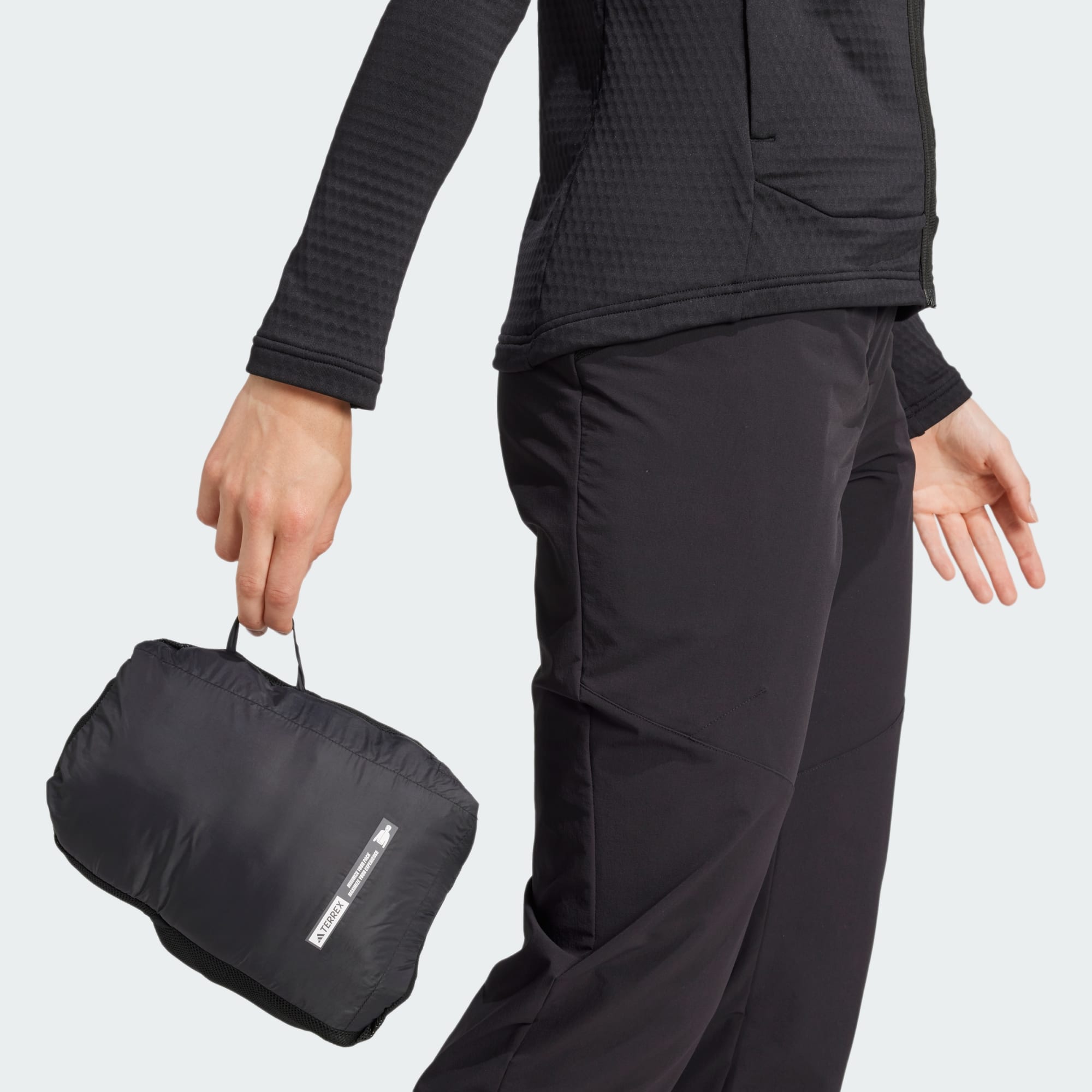 Une veste légère, repliable et isolante conçue en partie à base de matières recyclées.