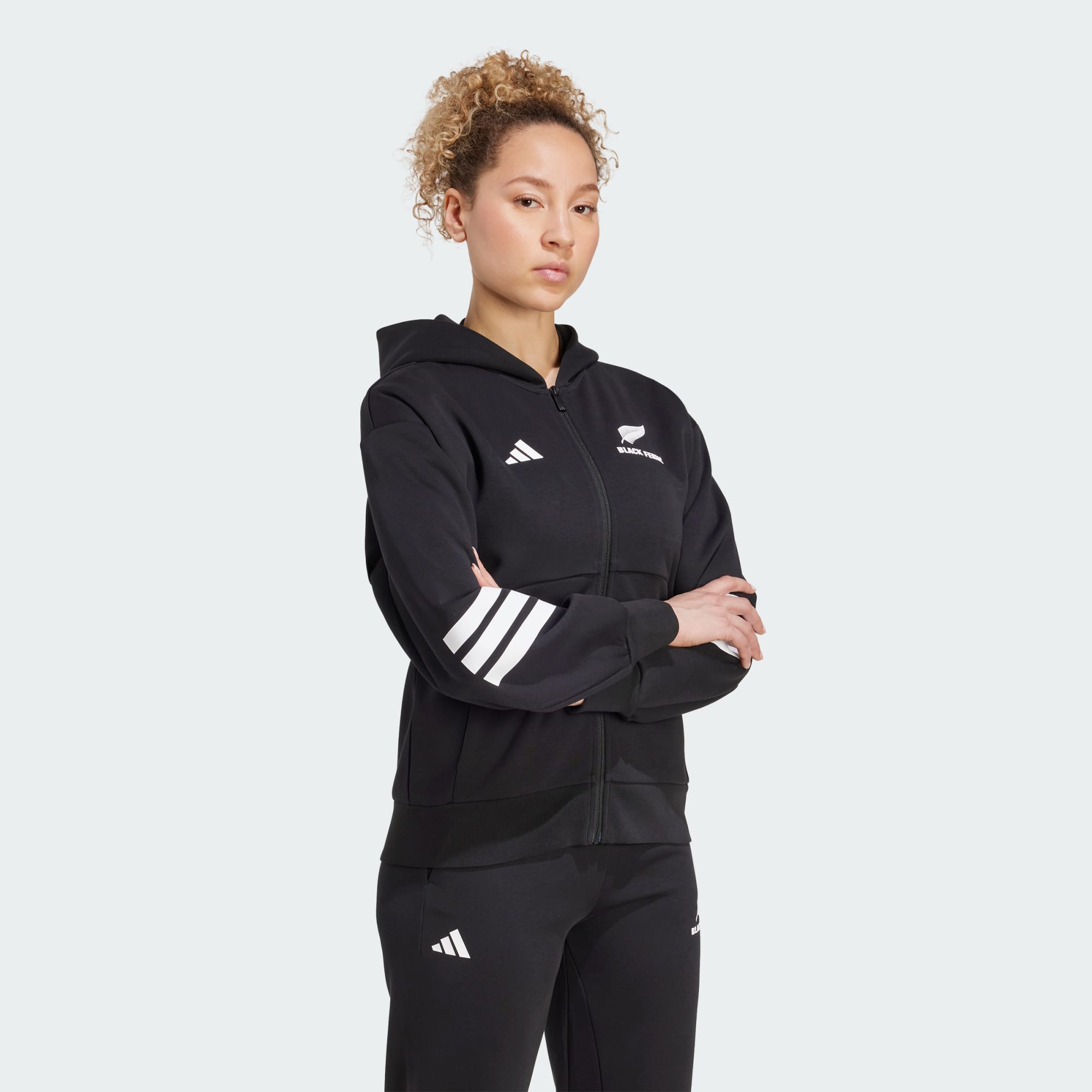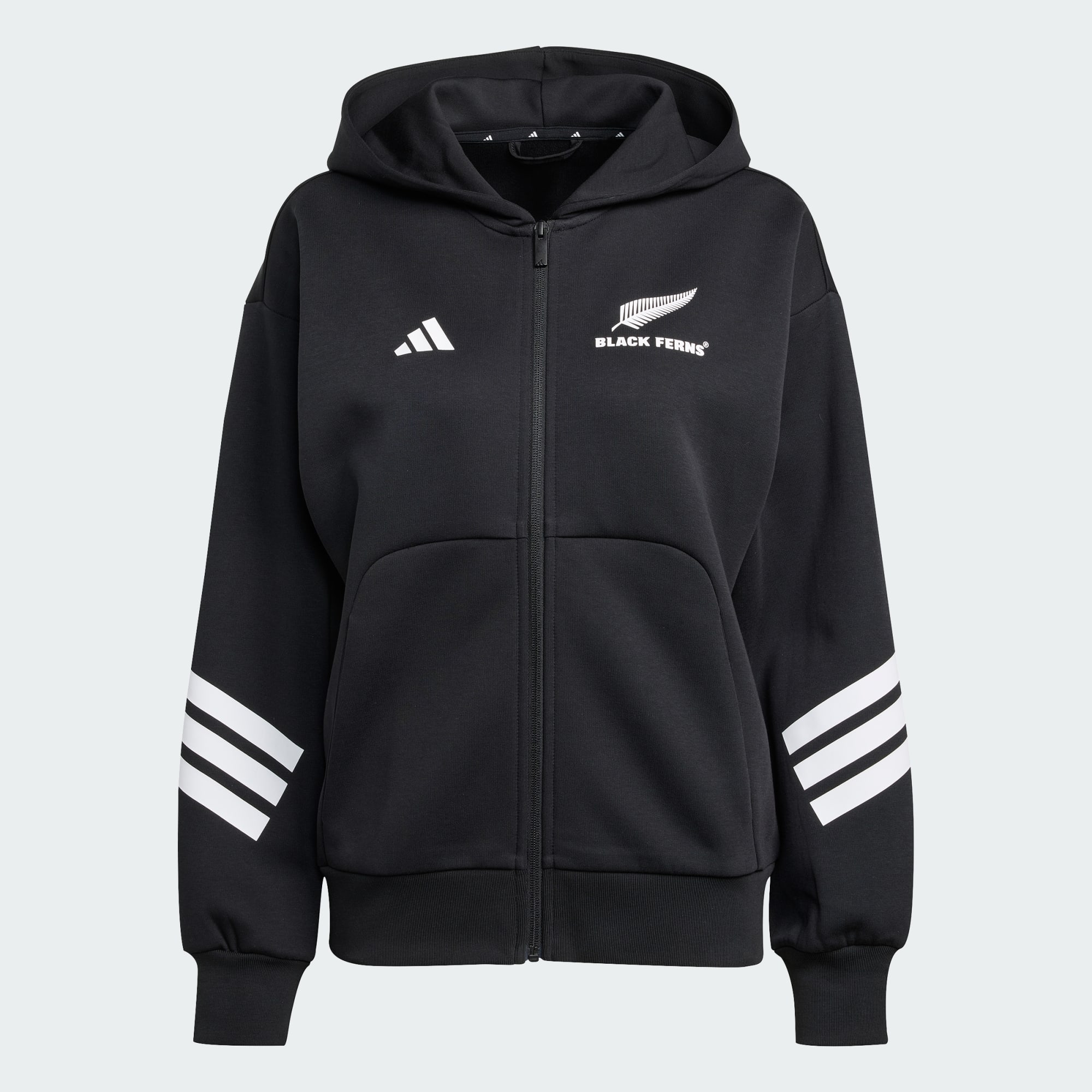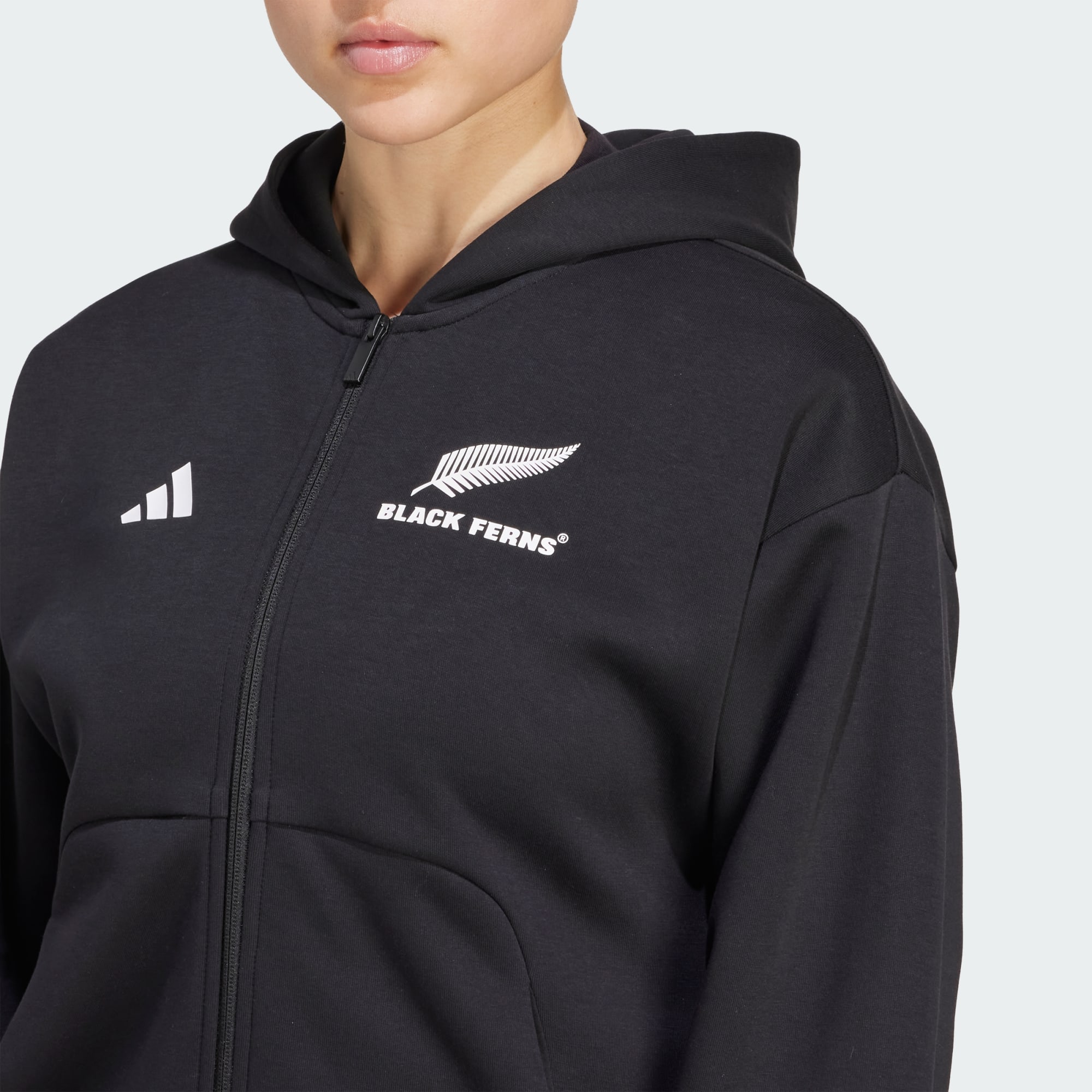 Affiche ton soutien à l'équipe de Nouvelle-Zélande féminine de rugby à sept Cette veste à capuche de rugby adidas allie confort et style pour les jours de match et au-delà. Sa matière douce et premium te garde au chaud, tandis que sa grande capuche et ses poches kangourou t'offrent un maximum de confort quand tu as besoin de te détendre.