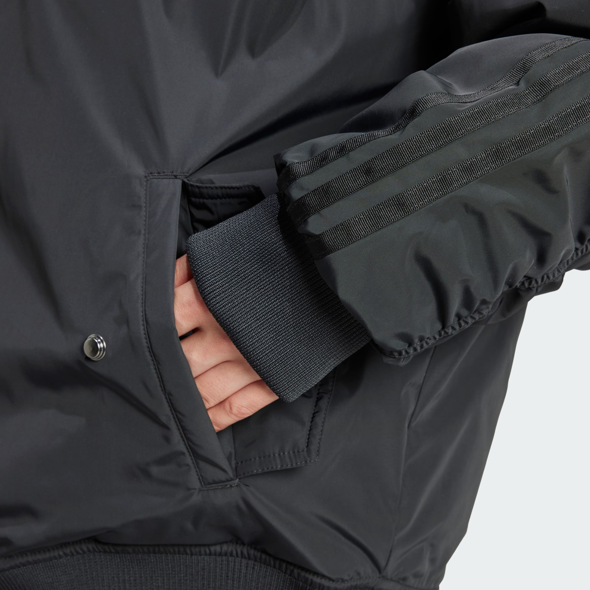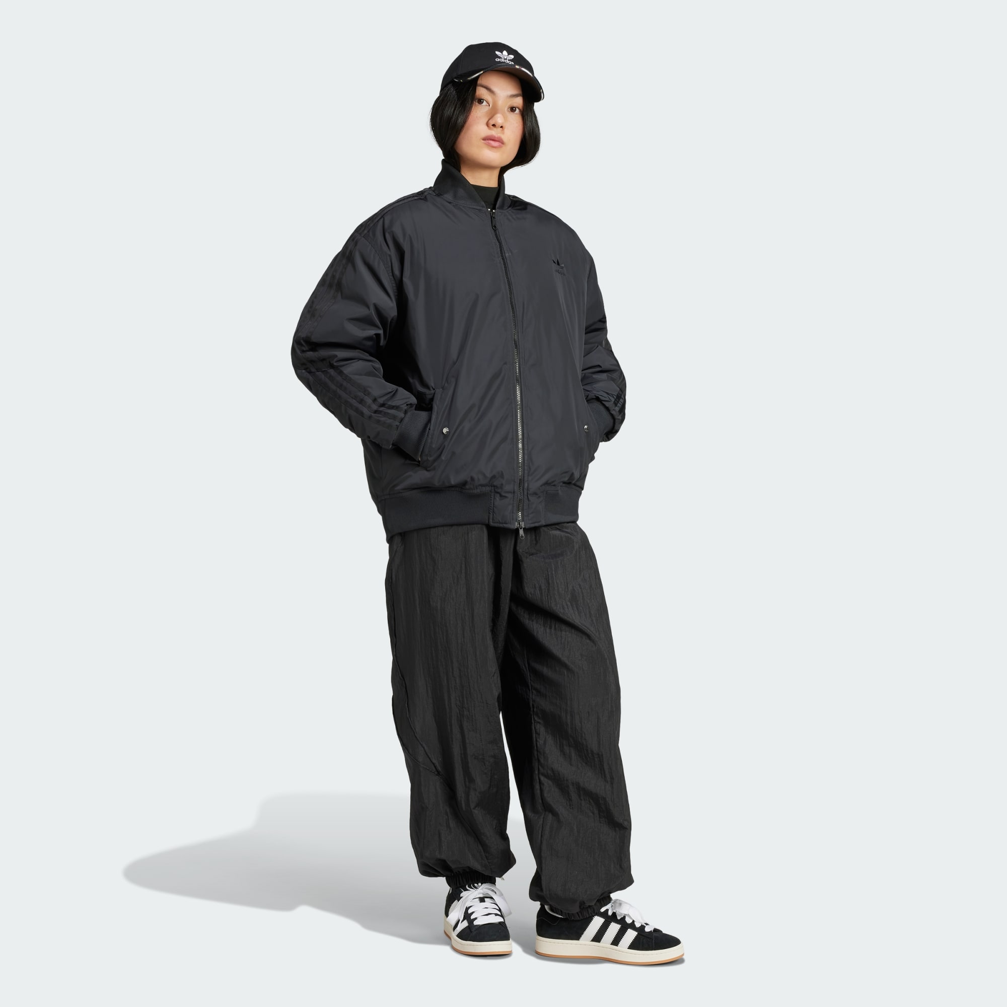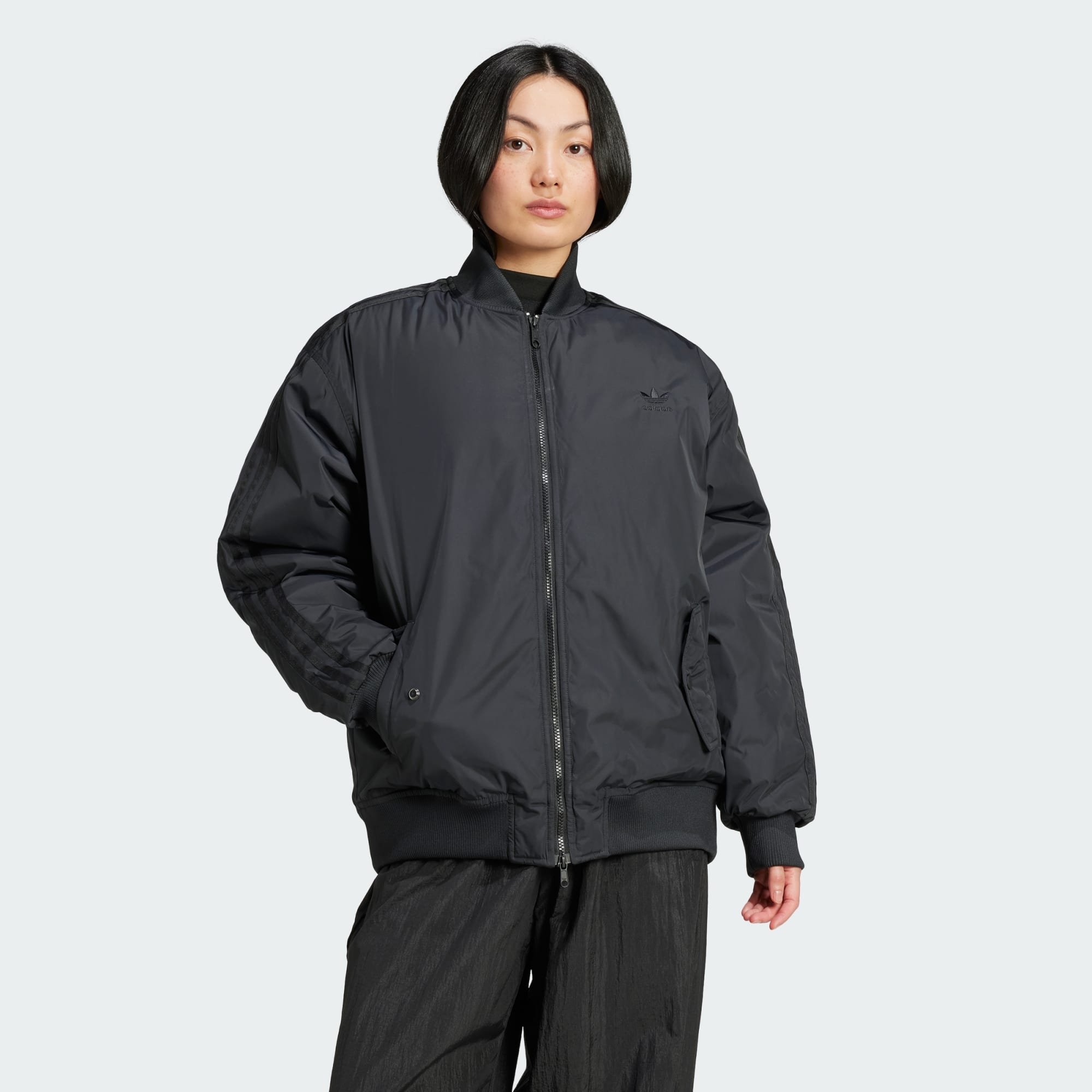 Cette veste bomber SST allie confort et style. Sa coupe ample et oversize crée un look décontracté, tandis que des bords-côtes aux poignets, à la base et au col bomber restent fidèles à la silhouette iconique. Des détails discrets comme 3 bandes cousues et un logo Trèfle ton sur ton complètent le look. Ce produit est conçu avec des matériaux 100 % recyclés. En réutilisant des matériaux déjà créés, nous contribuons à réduire les déchets et notre dépendance aux ressources limitées, afin de réduire l'empreinte écologique des produits que nous fabriquons.