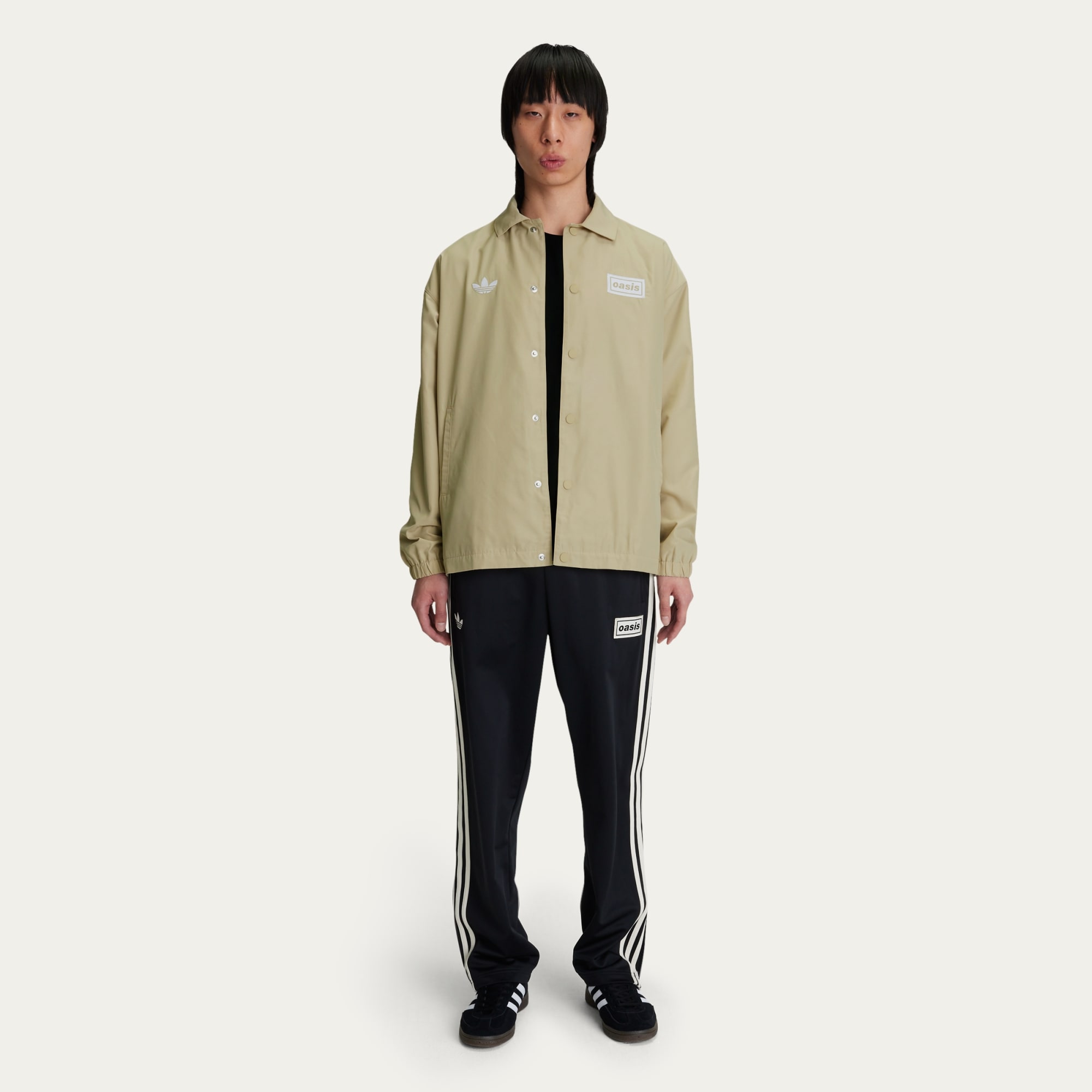 Une veste de coach classique avec le logo adidas Originals x Oasis, associant l'ADN du sport à l'héritage musical.