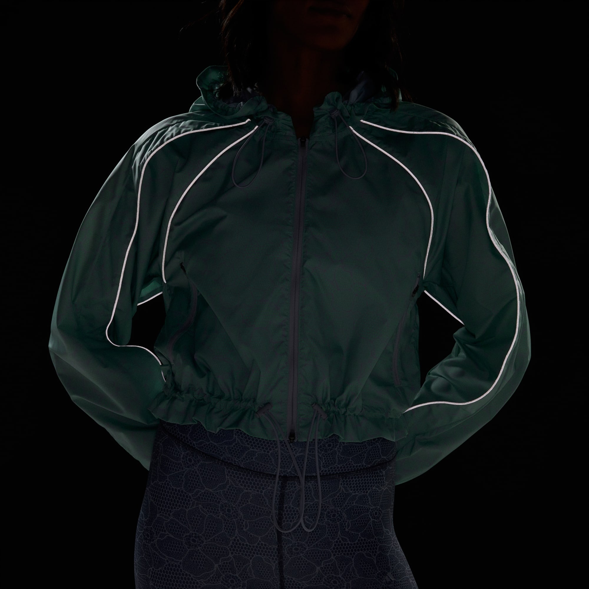 Une veste imprimée avec une base et une capuche élastiques pour plus de style et de confort.