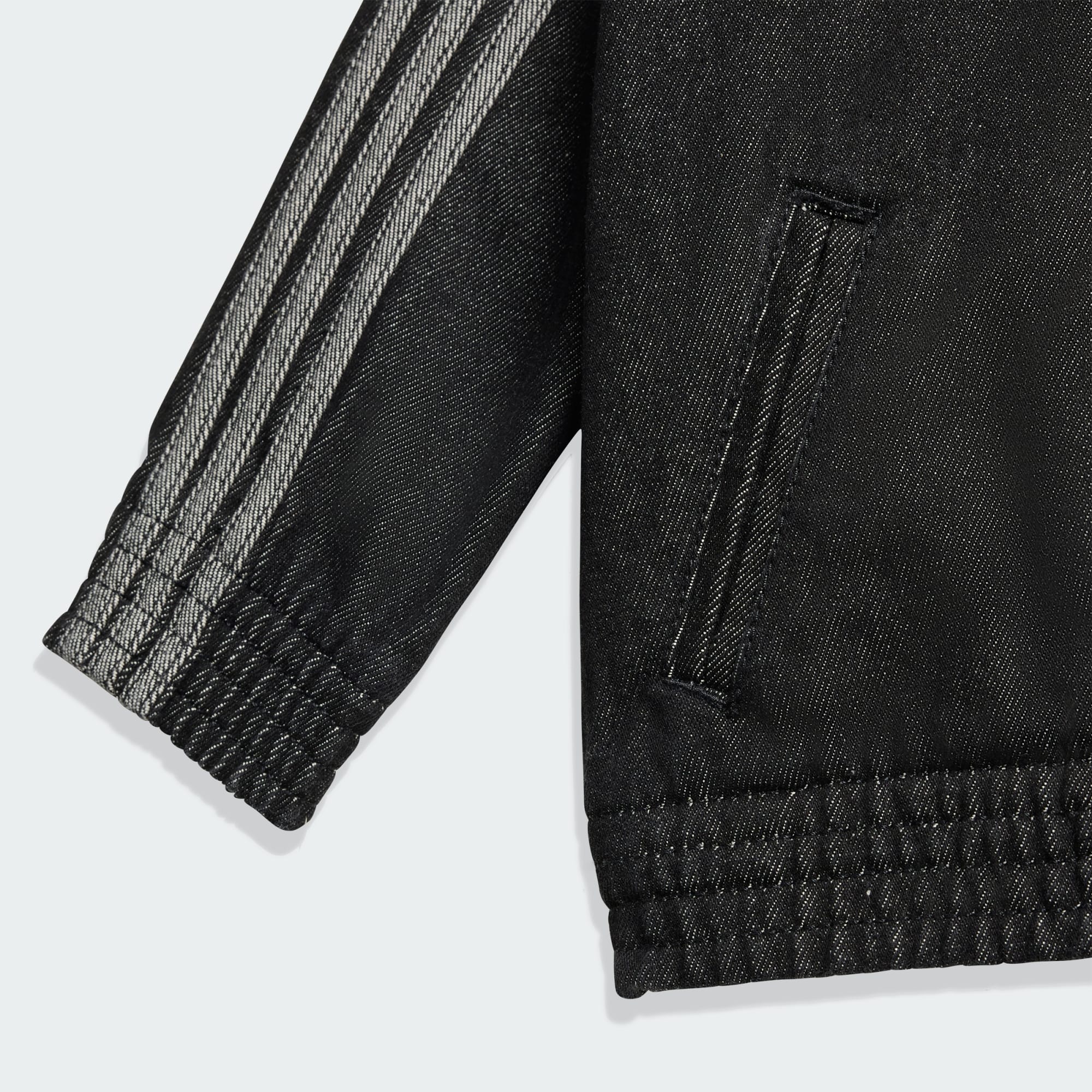 Une veste de survêtement en denim pour une interprétation moderne d’un classique adidas.